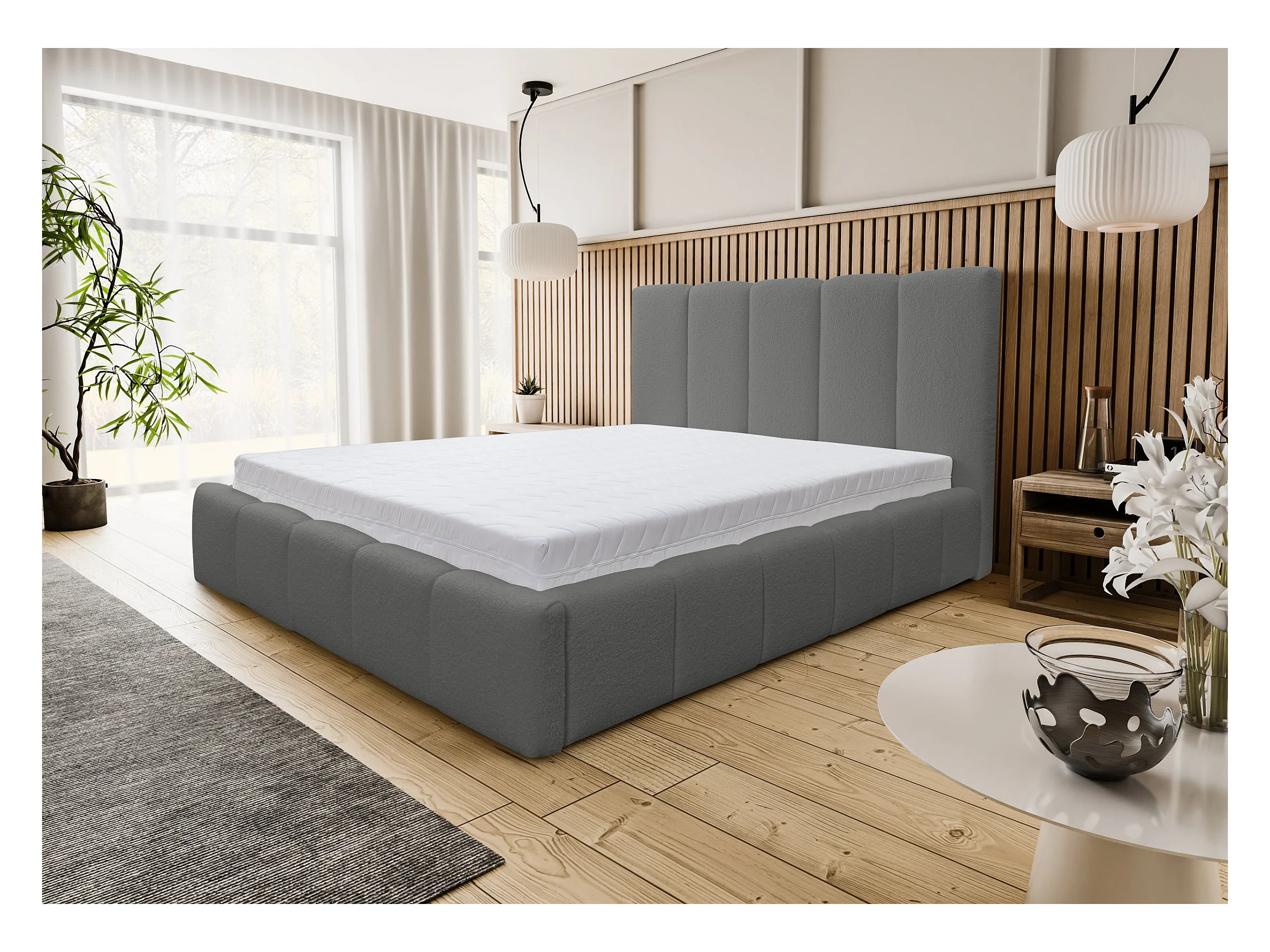 Lit rembourré Marco avec tête de lit, 160 x 200 cm, lit double avec coffre de rangement et sommier à lattes en métal, tissu bouclé, couleur : gris