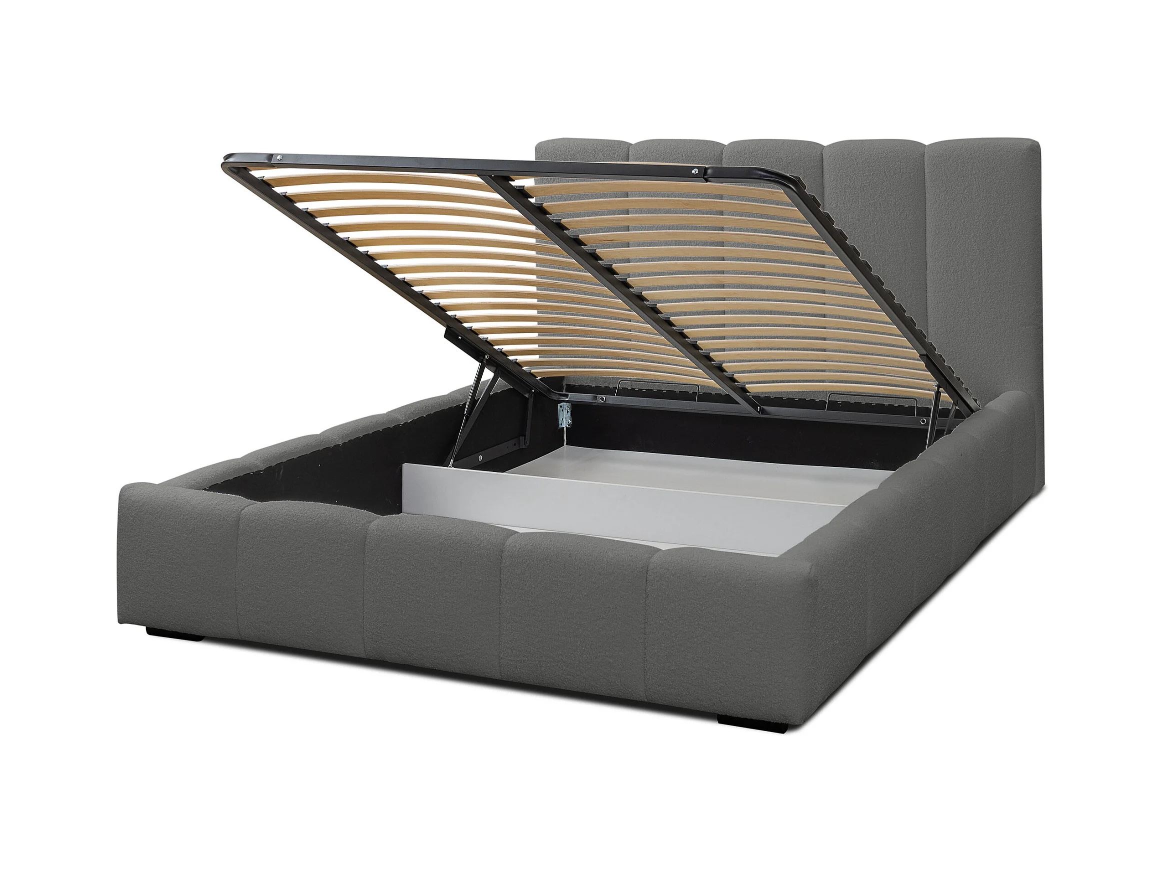 Lit rembourré Basti avec tête de lit, 160 x 200 cm, lit double avec coffre de rangement et sommier à lattes en métal, tissu bouclé, couleur : gris
