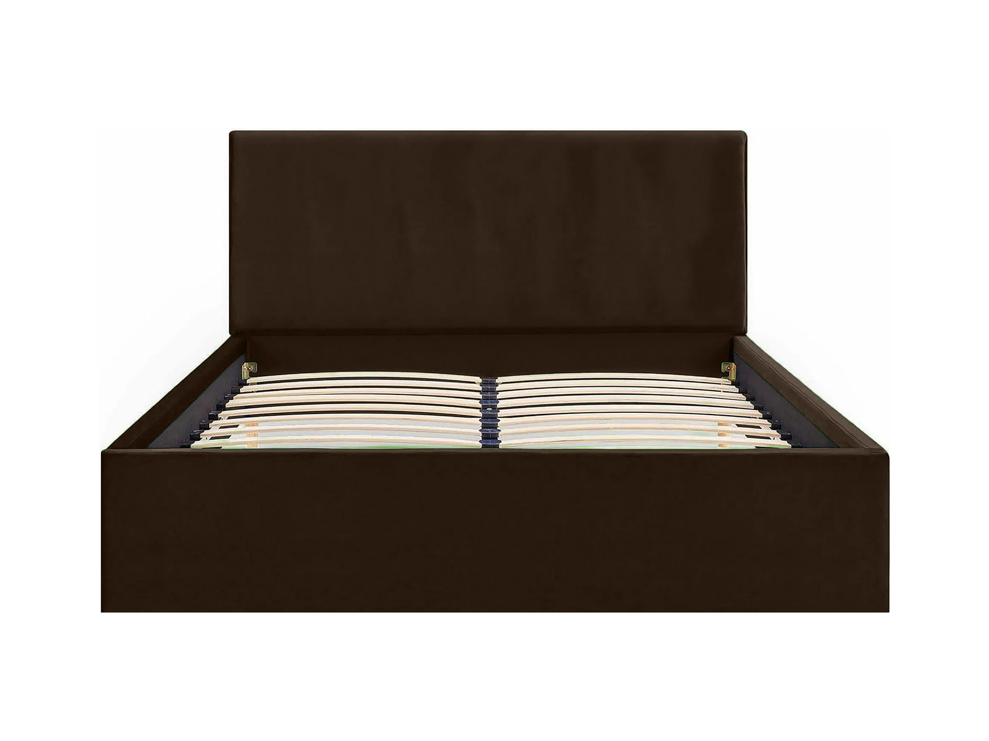 Lit rembourré Nefryt 130x212x90 cm, couchage 120x200 cm, coffre, vérin à gaz, tissu Monolith brun