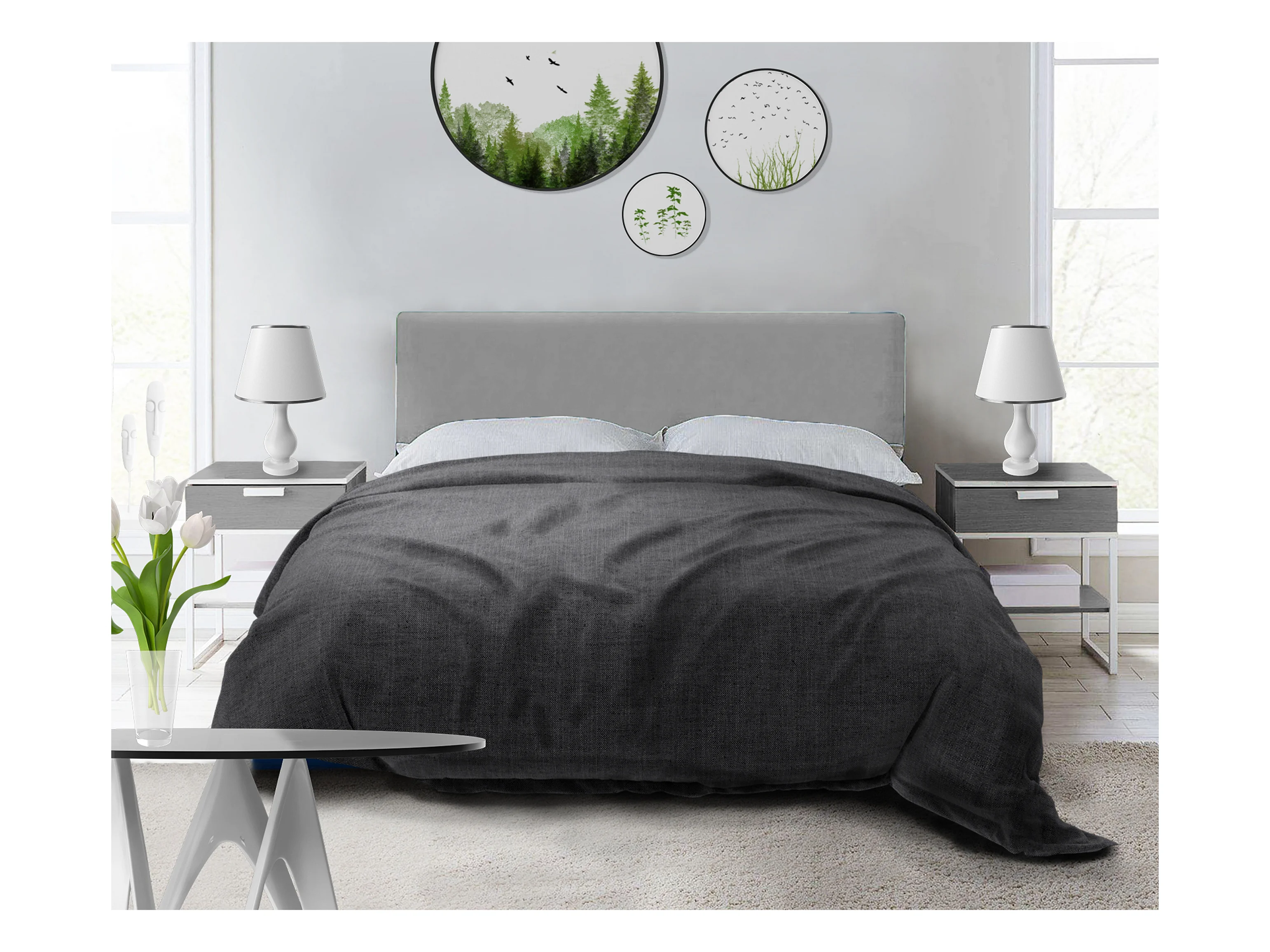 Lit rembourré 180 x 200 cm, avec deux tables de chevet avec espace de rangement, lin, gris + noir