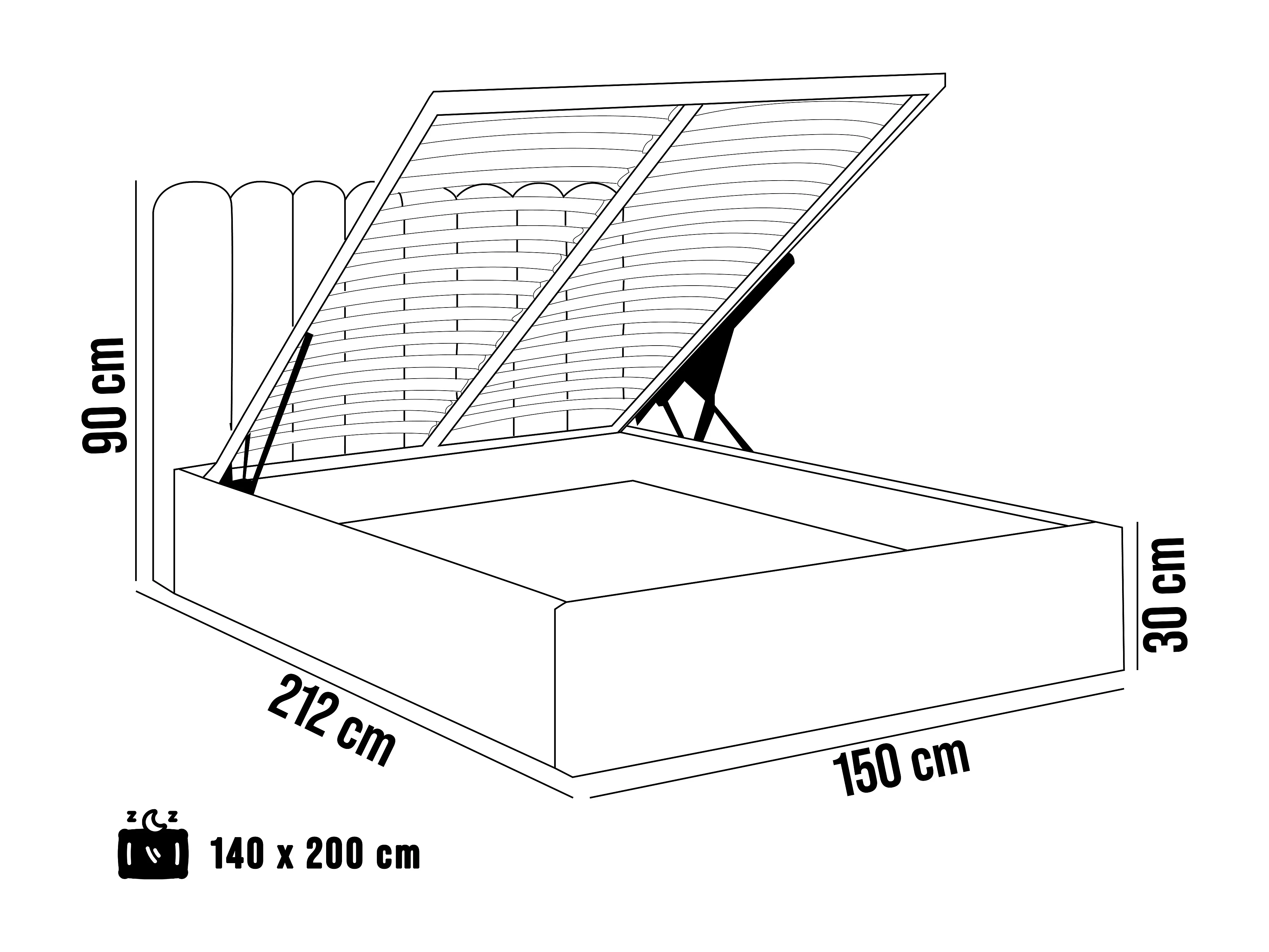 Lit rembourré Nefryt 150x212x90 cm, couchage 140x200 cm, coffre, vérin à gaz, tissu Monolith brun