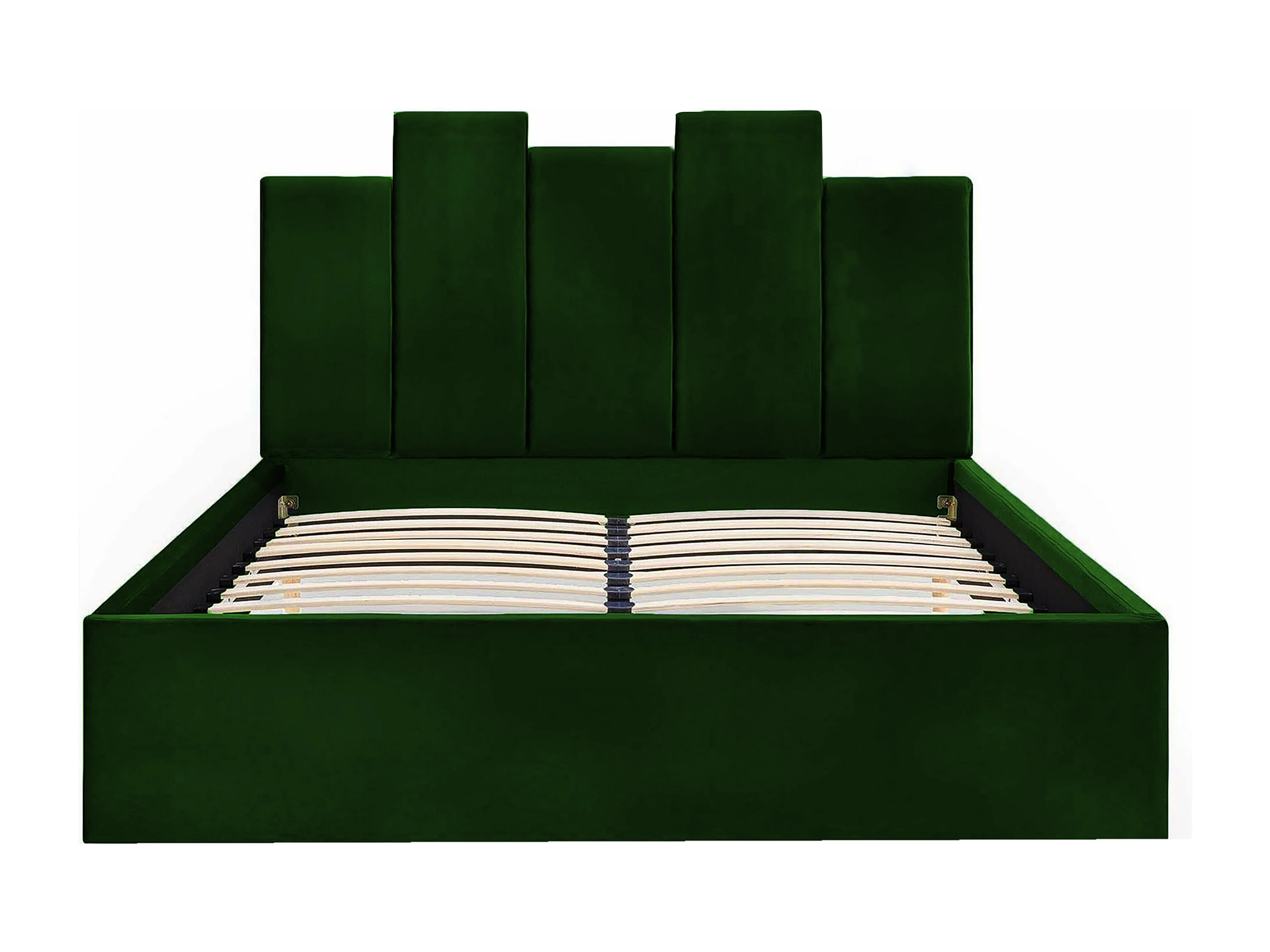 Lit MALIBU, tête de lit rembourrée, revêtement VELUTTO haut de gamme, coffre avec vérins à gaz, hauteur confort 39 cm, 160x200 cm, Vert