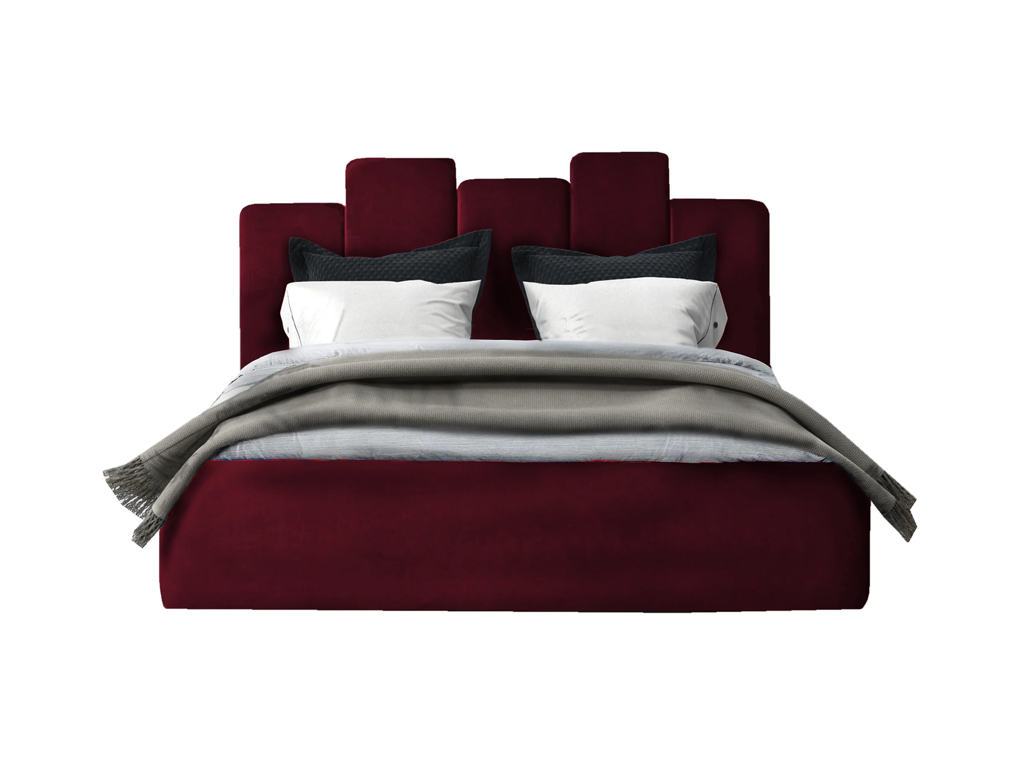 Lit MALAGA, tête de lit rembourrée, revêtement VELUTTO haut de gamme, coffre avec vérins à gaz, hauteur confort 39 cm, 200x200 cm, Marron clair