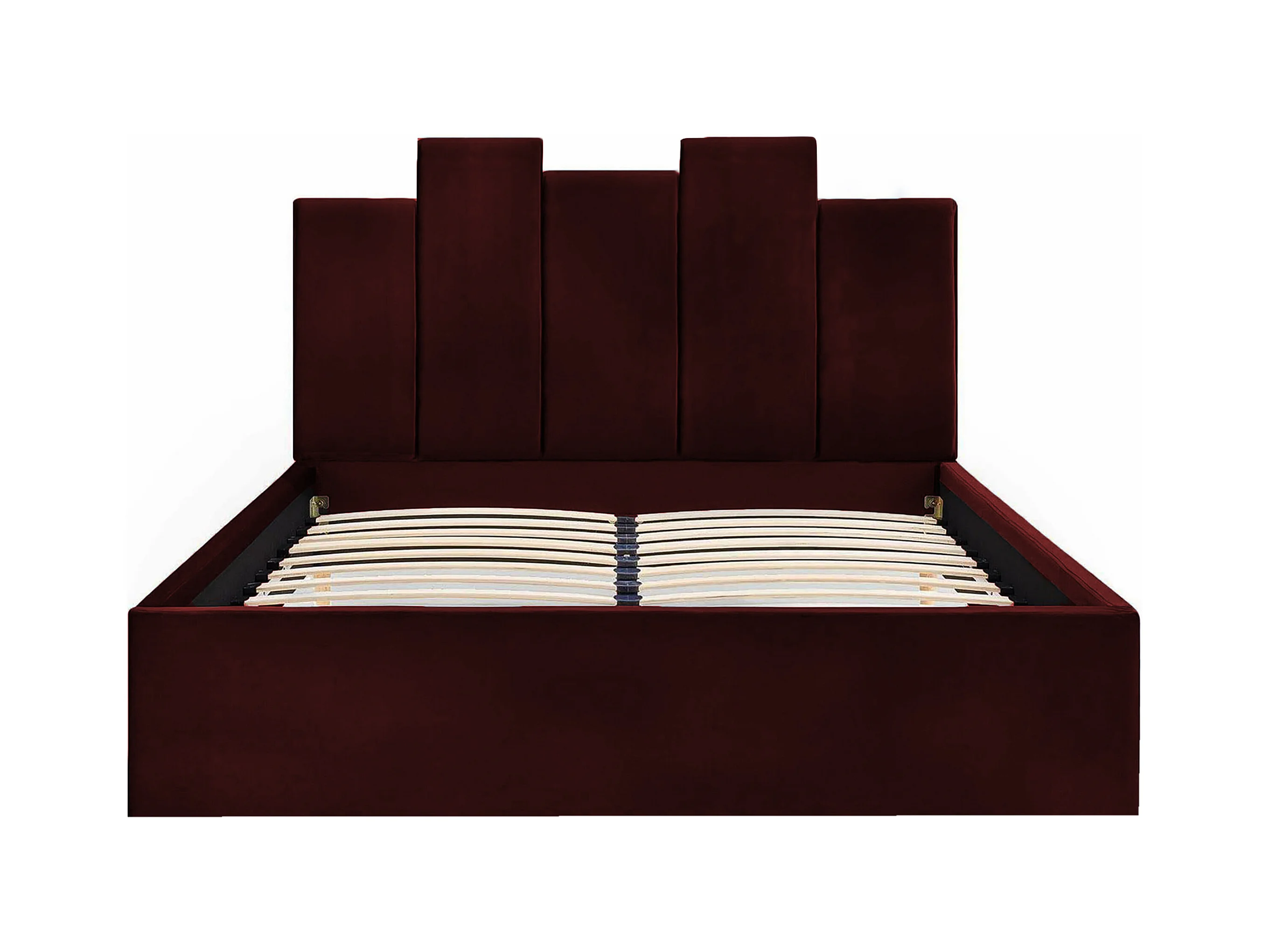 Lit rembourré Orion 210x212x90 cm, couchage 200x200 cm, coffre, vérin à gaz, tissu Monolith châtaigne