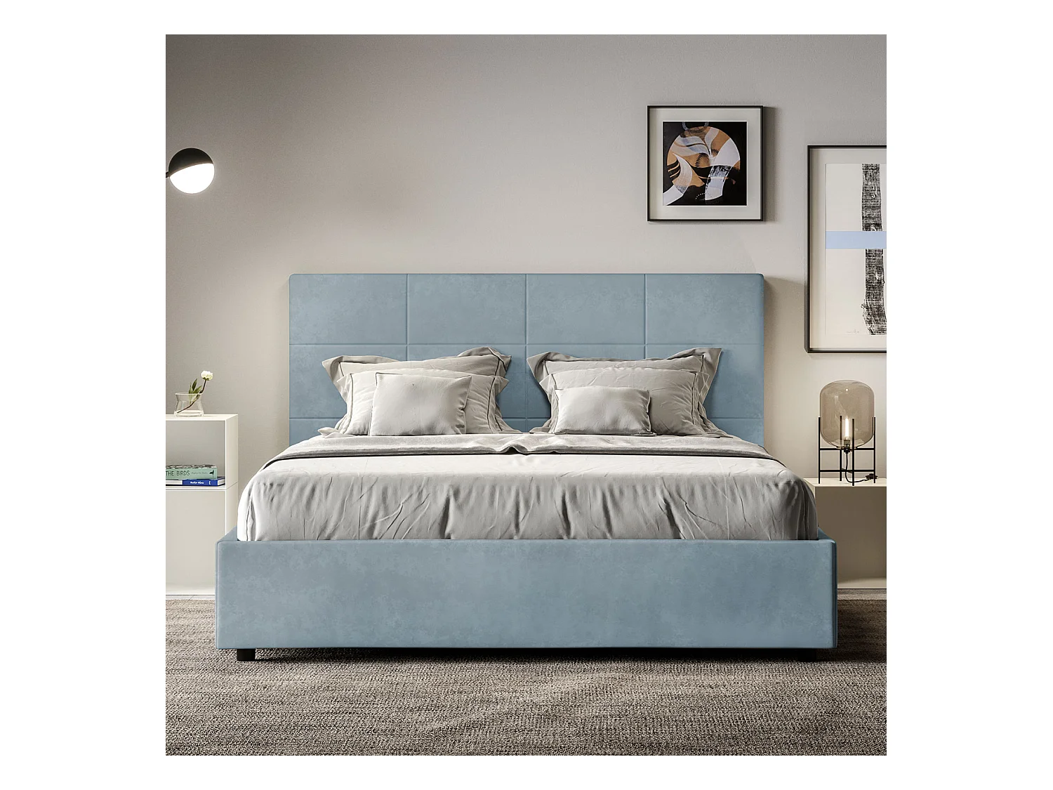 Lit double Dabbat, Lit fixe avec revêtement et tête de lit en tissu, 100% Made in Italy, adapté pour matelas 160x190 cm, Bleu