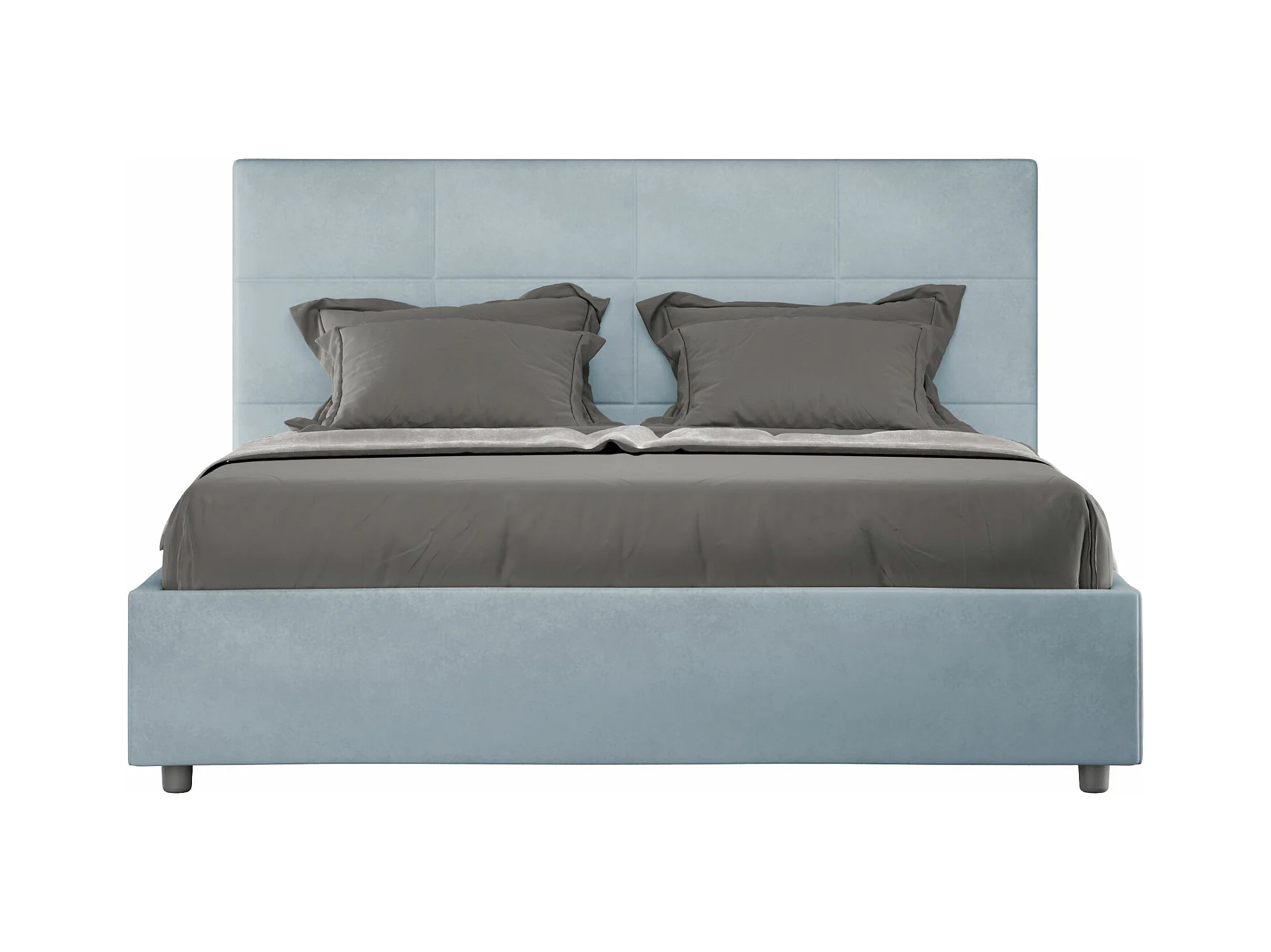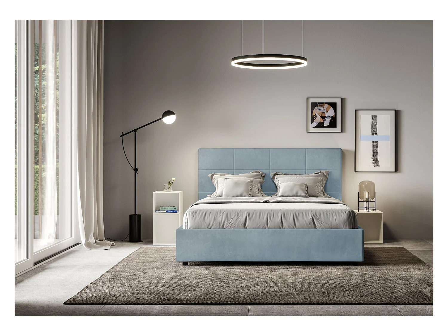 Lit double Dferron, Lit fixe en tissu avec pieds, 100% Made in Italy, adapté pour matelas 160x190 cm, Bleu