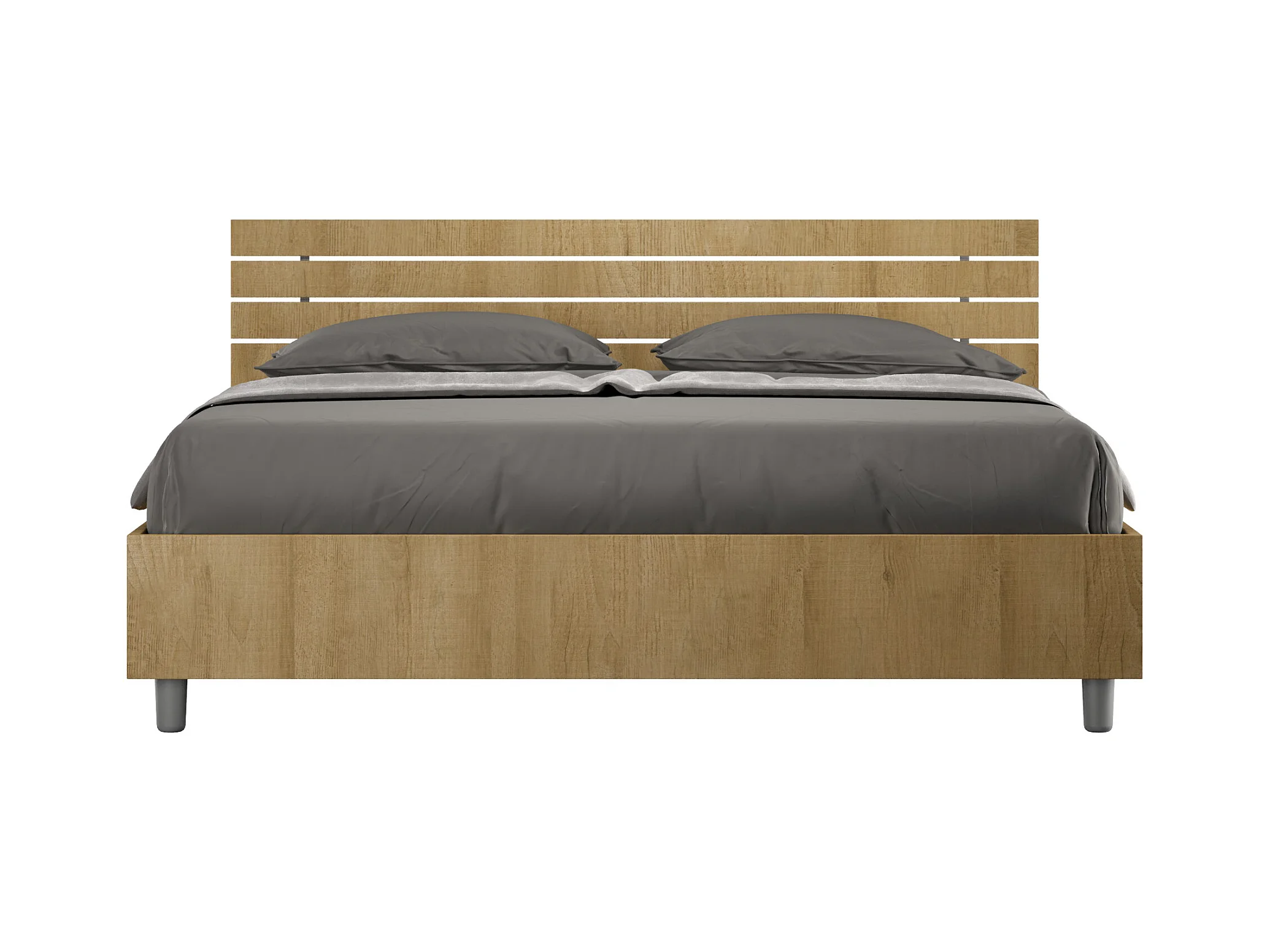 Lit sans sommier 160x190 tête de lit inclinée avec des lames chêne nature Ankel