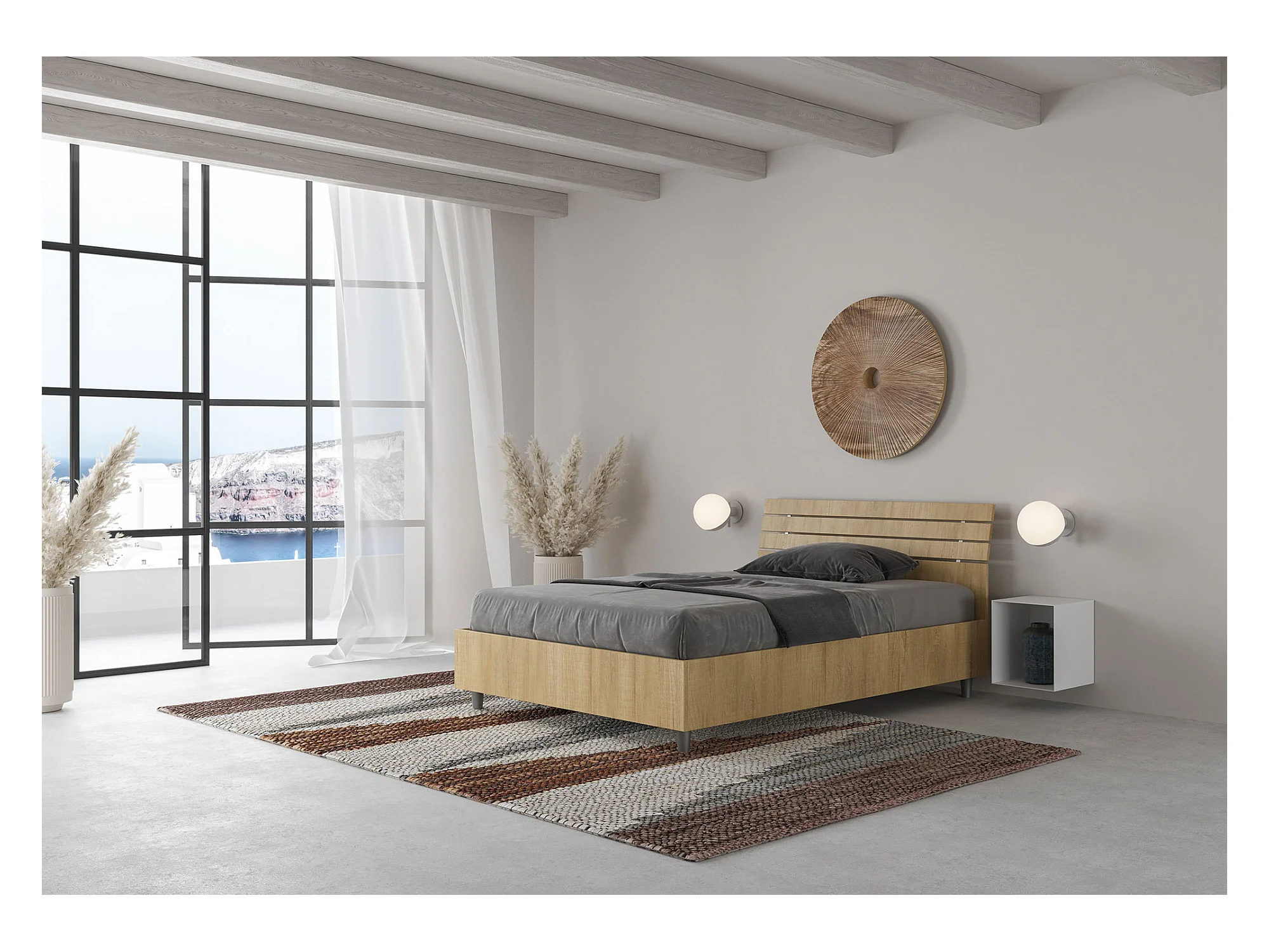 Lit 1 place et demi sans sommier 120x200 tête de lit inclinée avec des lames chêne nature Ankel