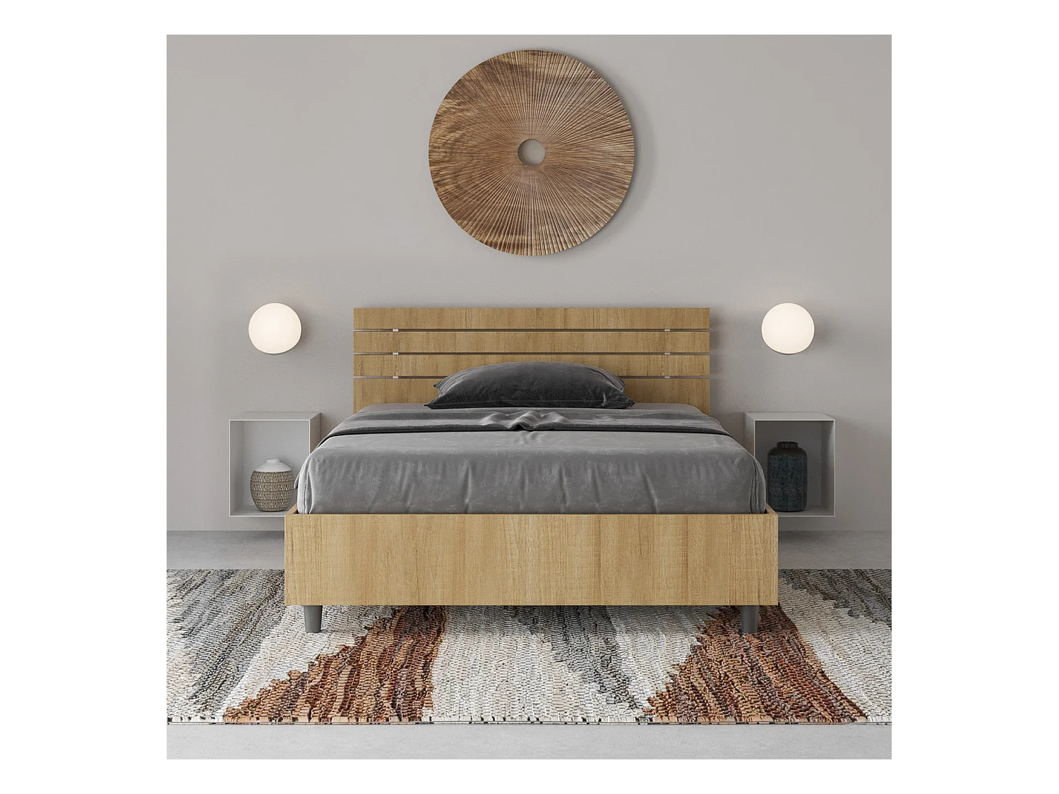Lit 1 place et demi sans sommier 120x200 chêne nature Nuamo