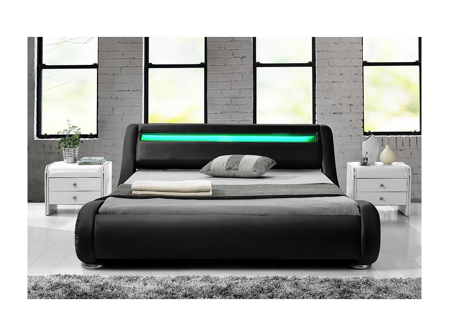 Cadre de lit avec LED 140 x 190 cm en PU noir BRIXTON