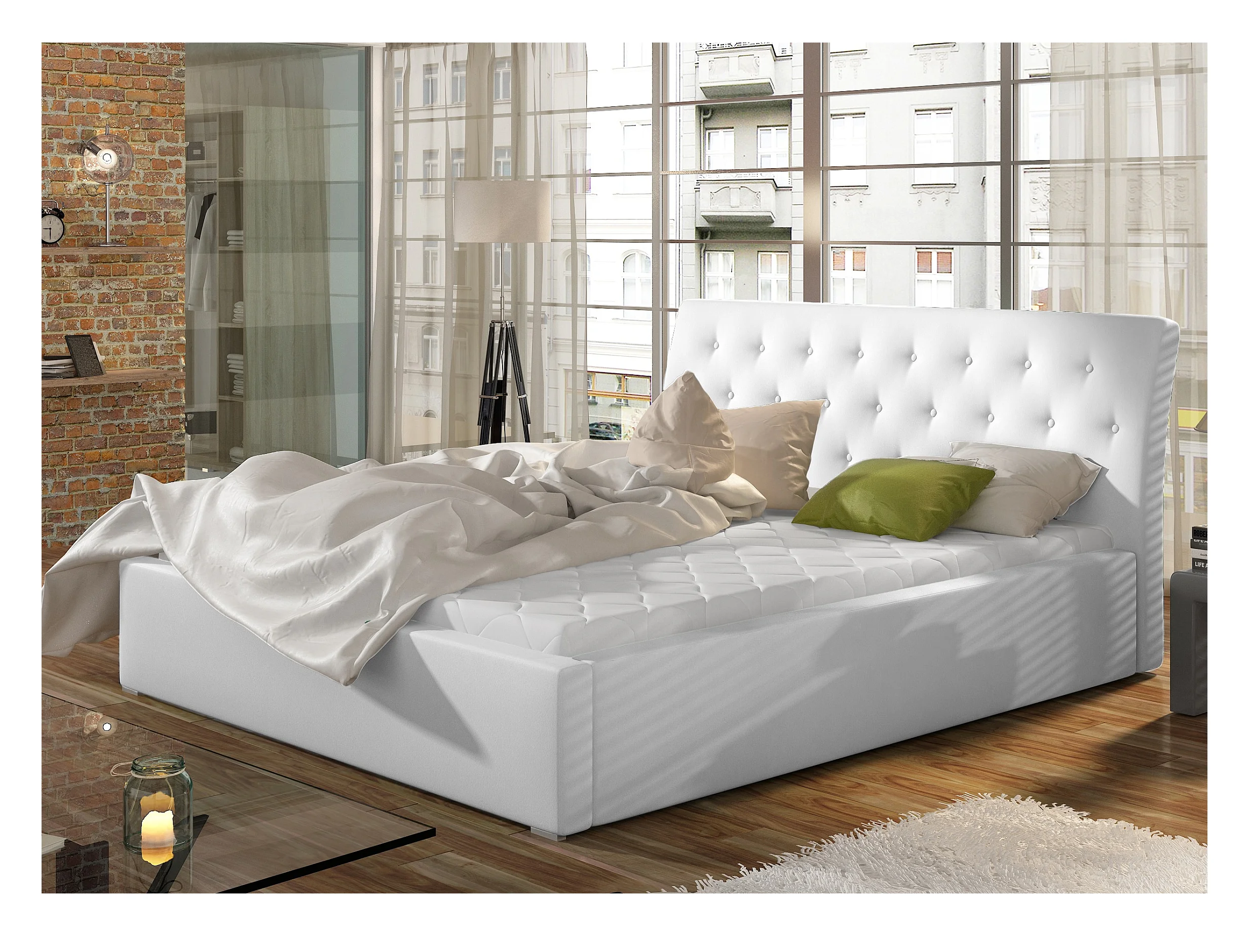 Lit coffre simili cuir blanc grand carré capitonné Berlino - 4 tailles-200x200