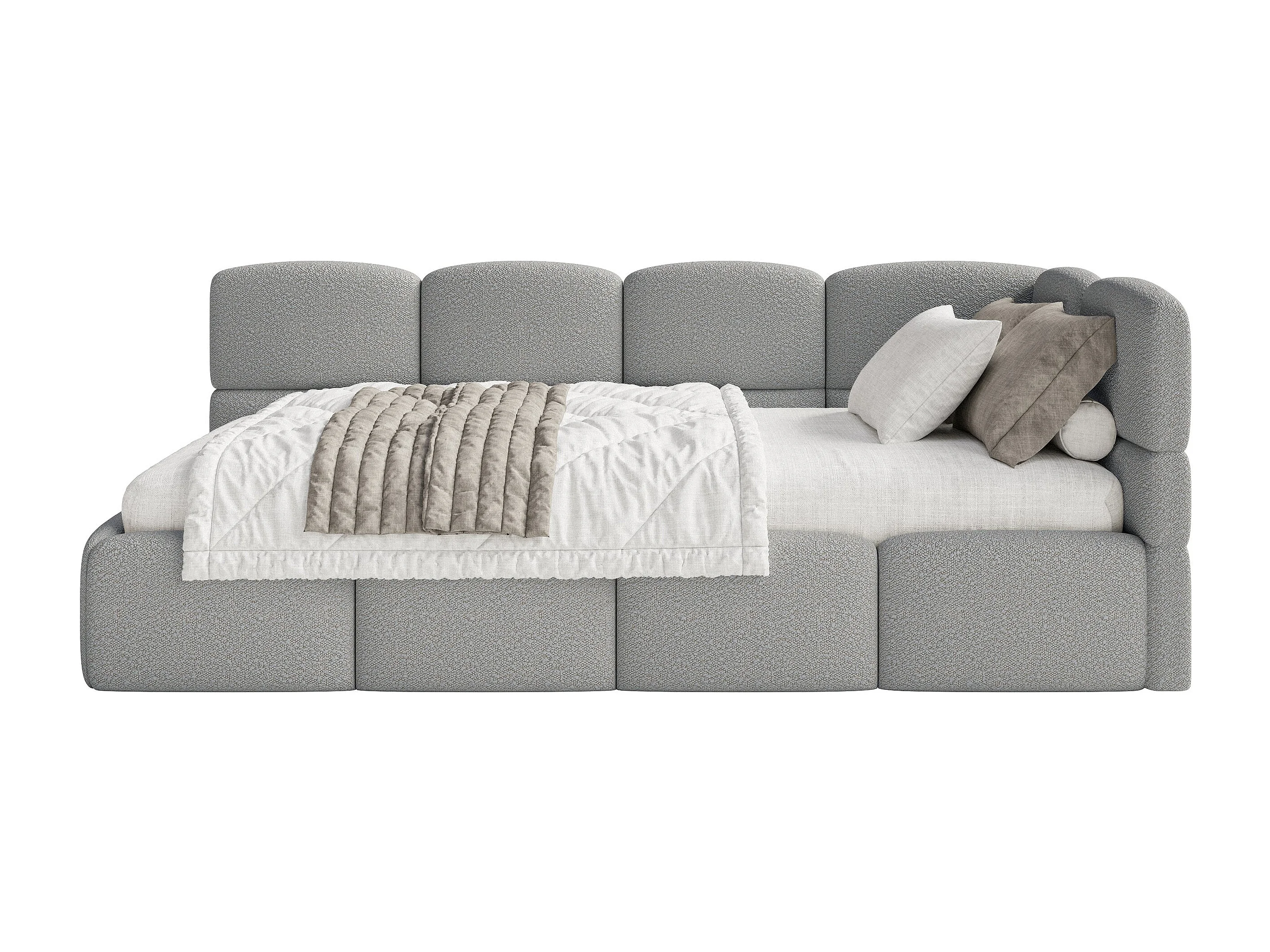 Lit simple 120x200 cm – tête de lit à droite– matelas & coffre de rangement – en bouclé gris – CLOUDY