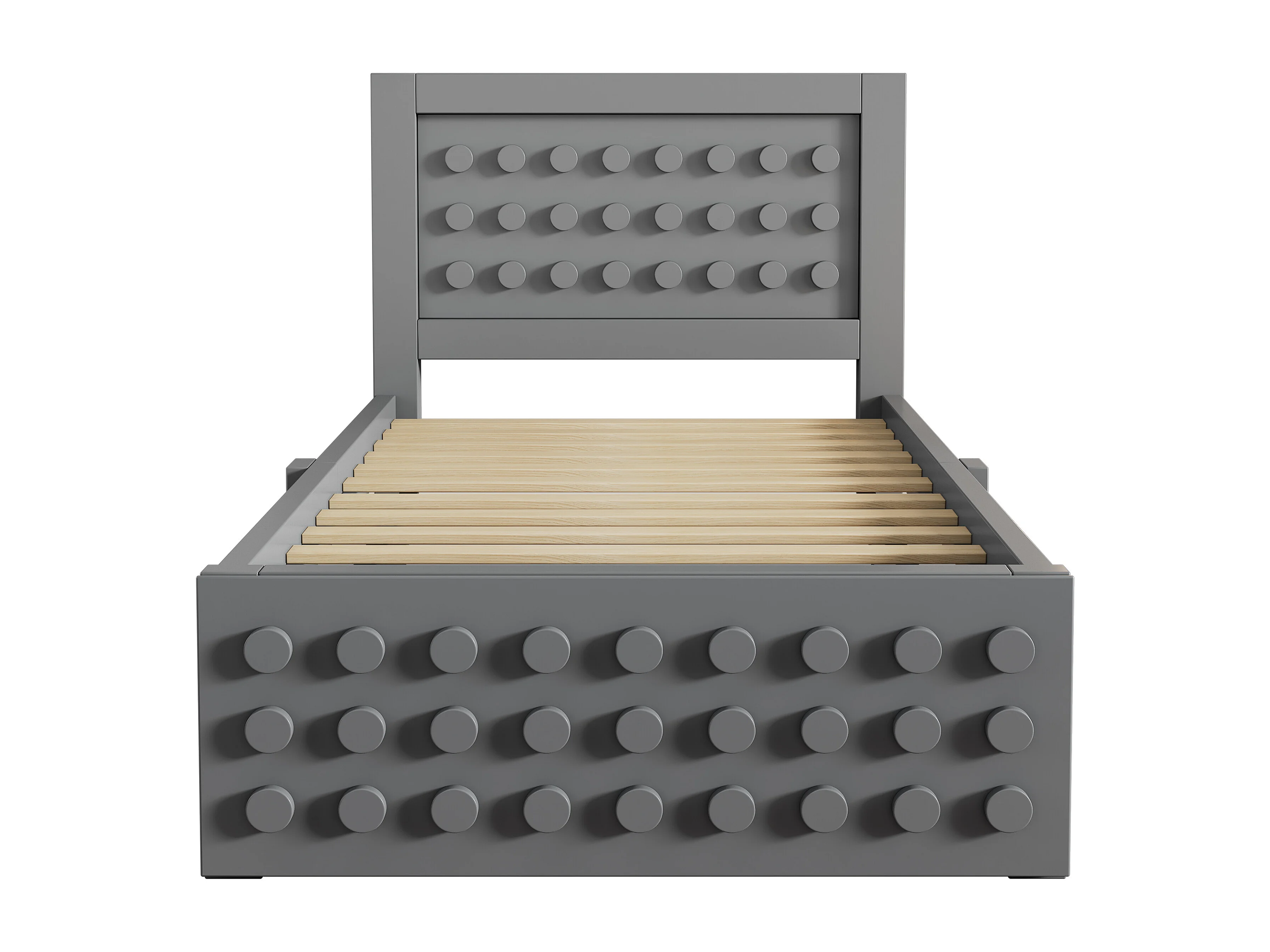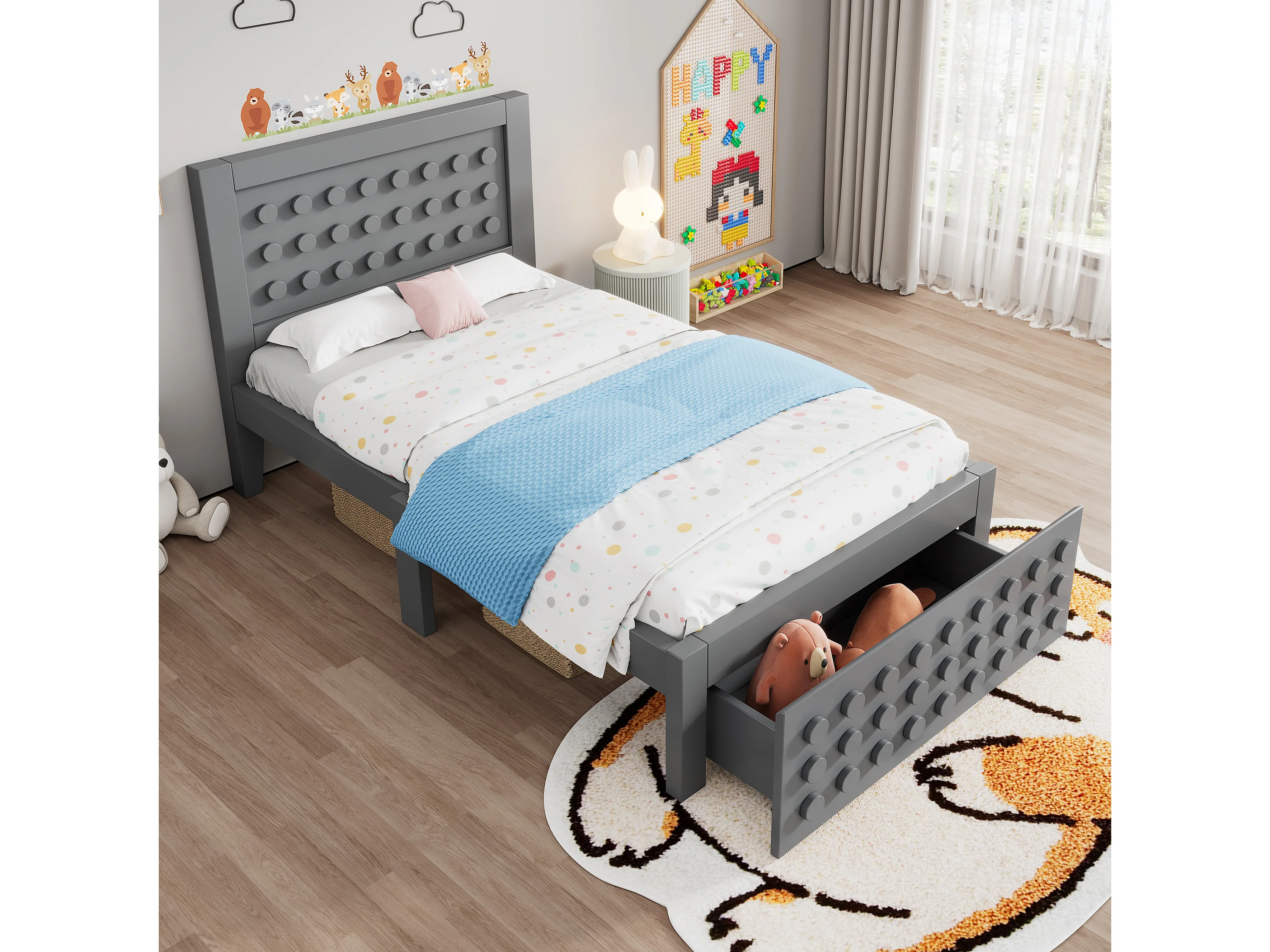 Lit simple 90x200 cm avec 1 tiroir et sommier à lattes, design bloc créatif gris - sans matelas