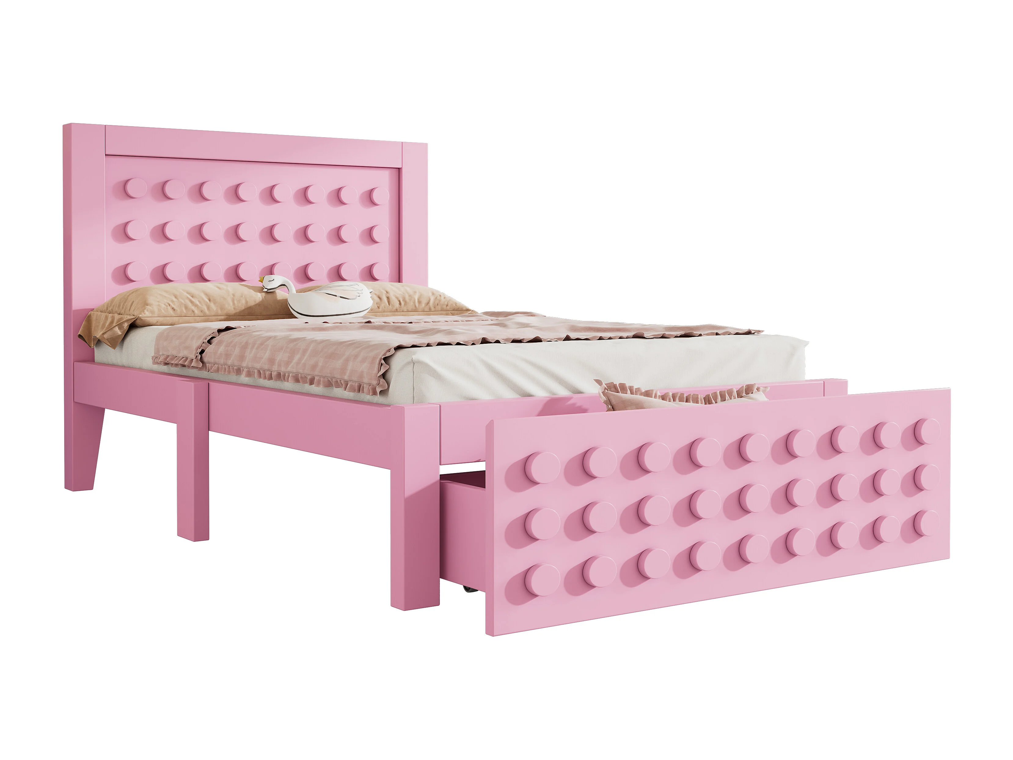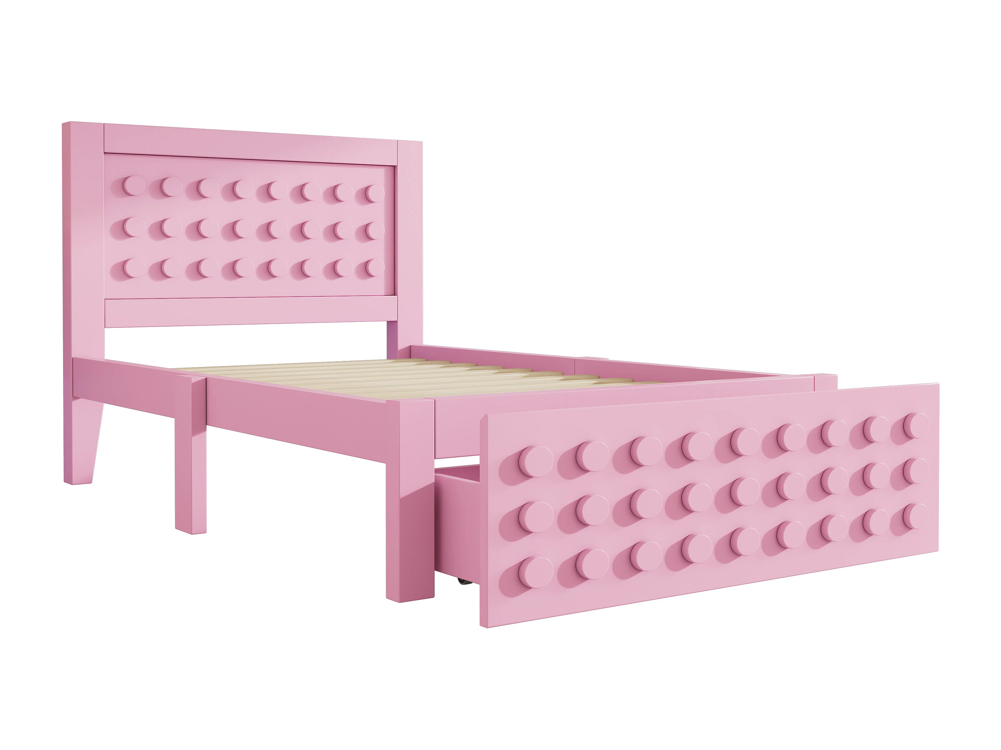 Lit simple 90x200 cm avec 1 tiroir et sommier à lattes, design bloc créatif rose - sans matelas
