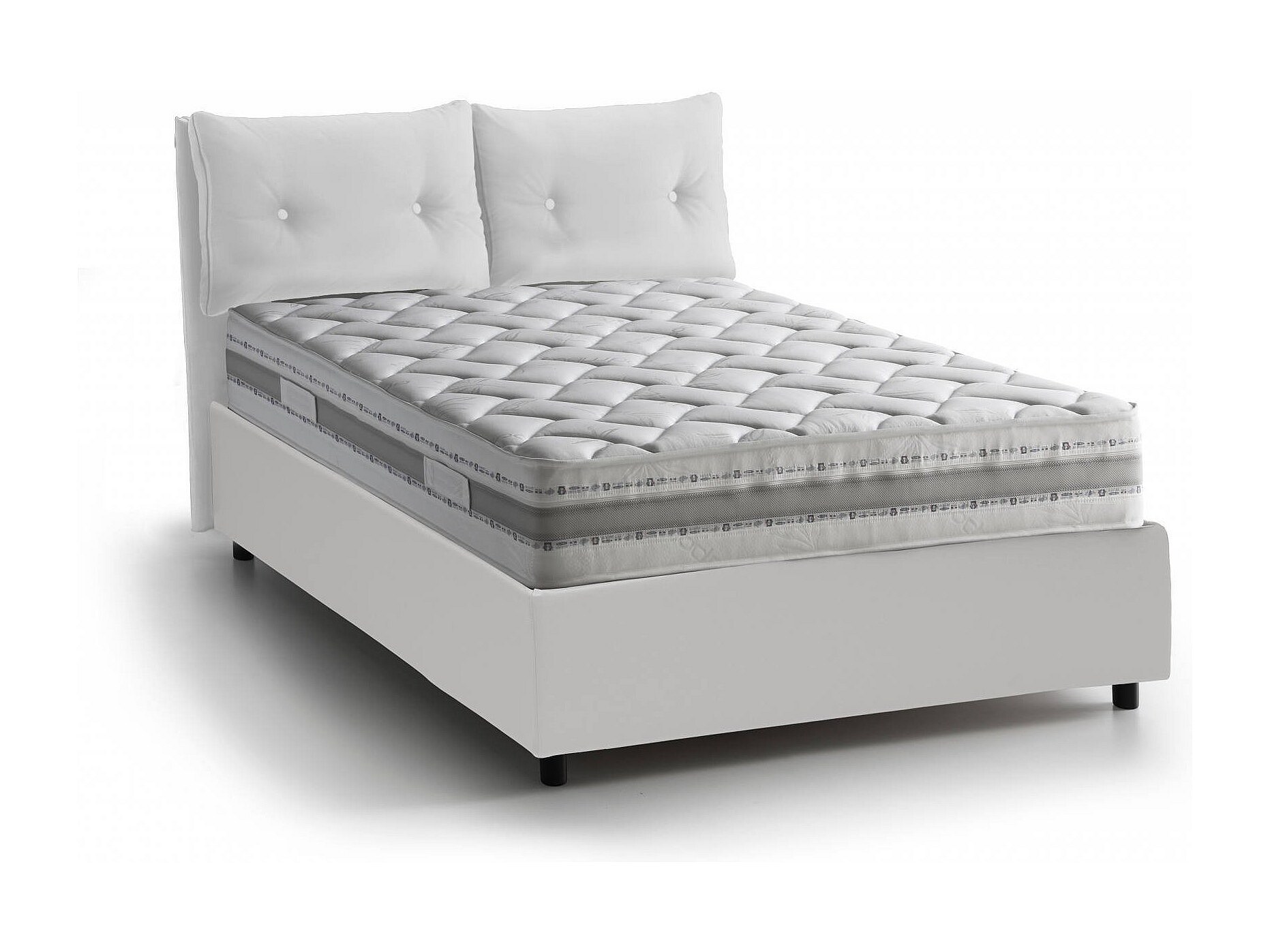 Lit simple Victoria, Lit coffre avec revêtement en éco-cuir, 100% Made in Italy, Ouverture frontale, avec matelas 80x190 cm inclus, Blanc