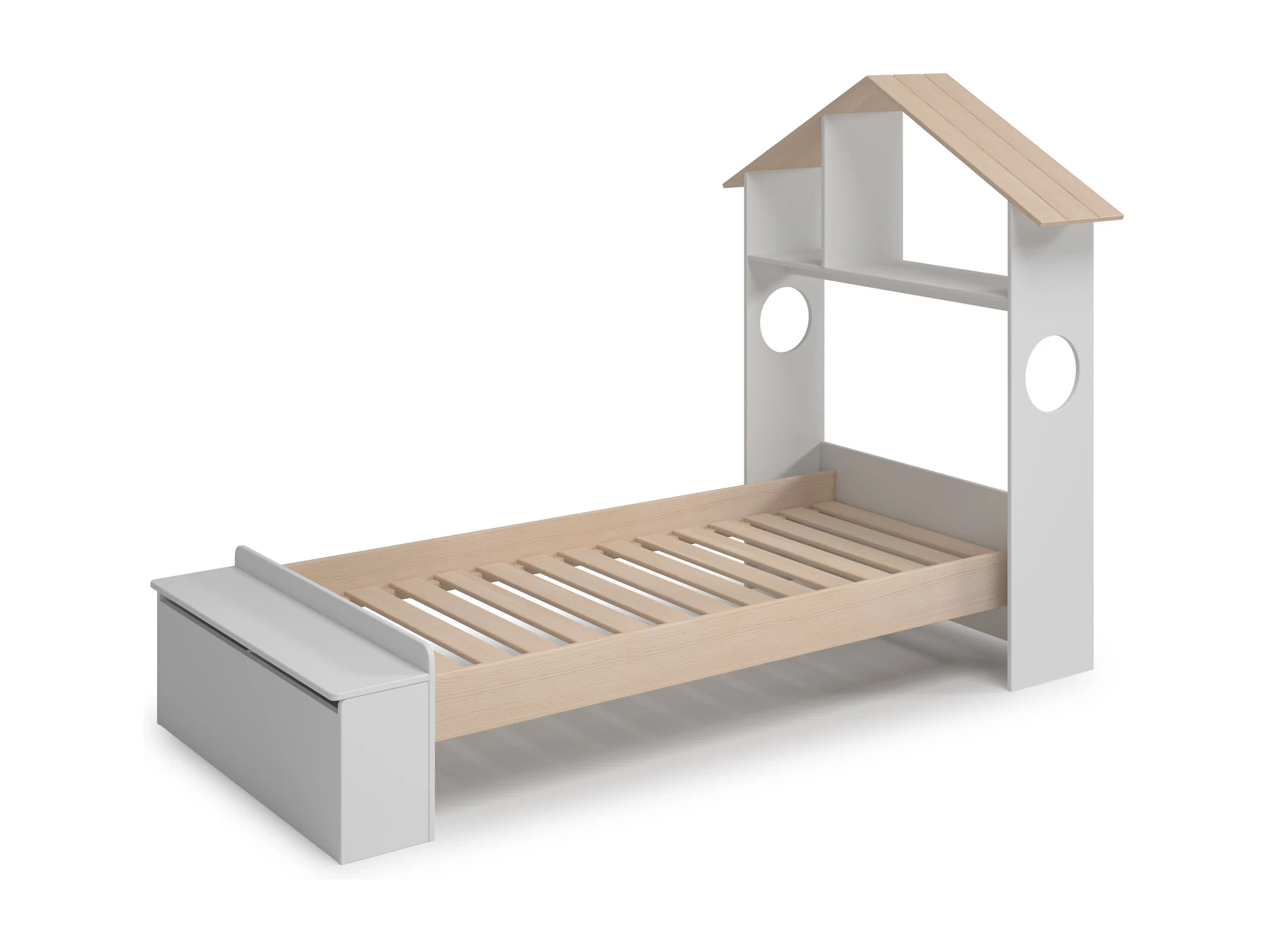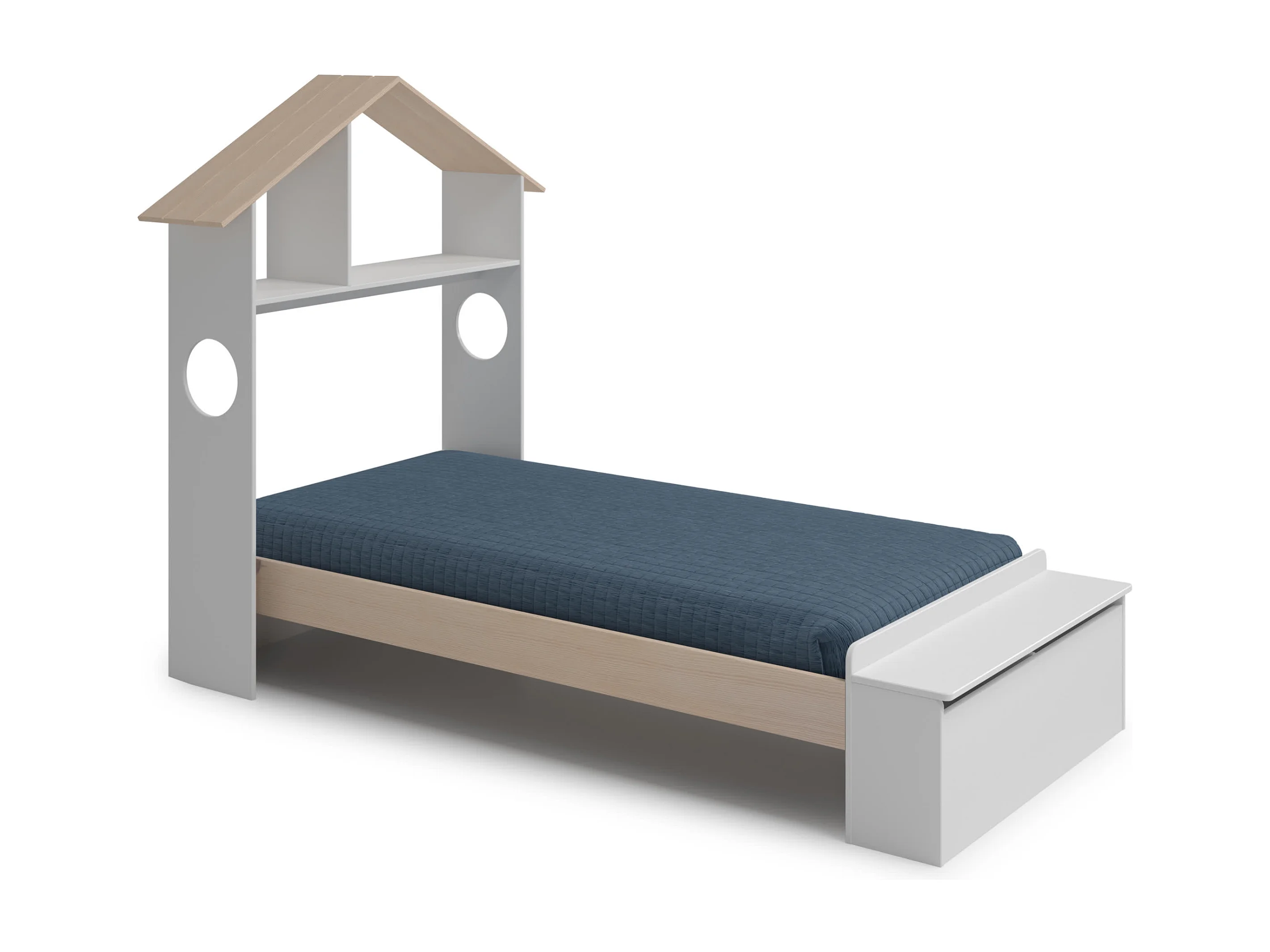Lit simple avec étagère et coffre de rangement 216,5x153 cm