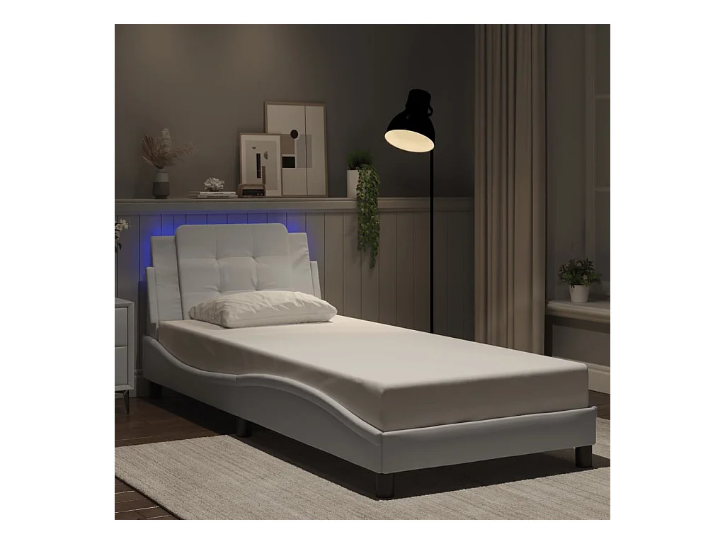 Lit simple avec lumières LED blanc 80x200 cm similicuir FR35144
