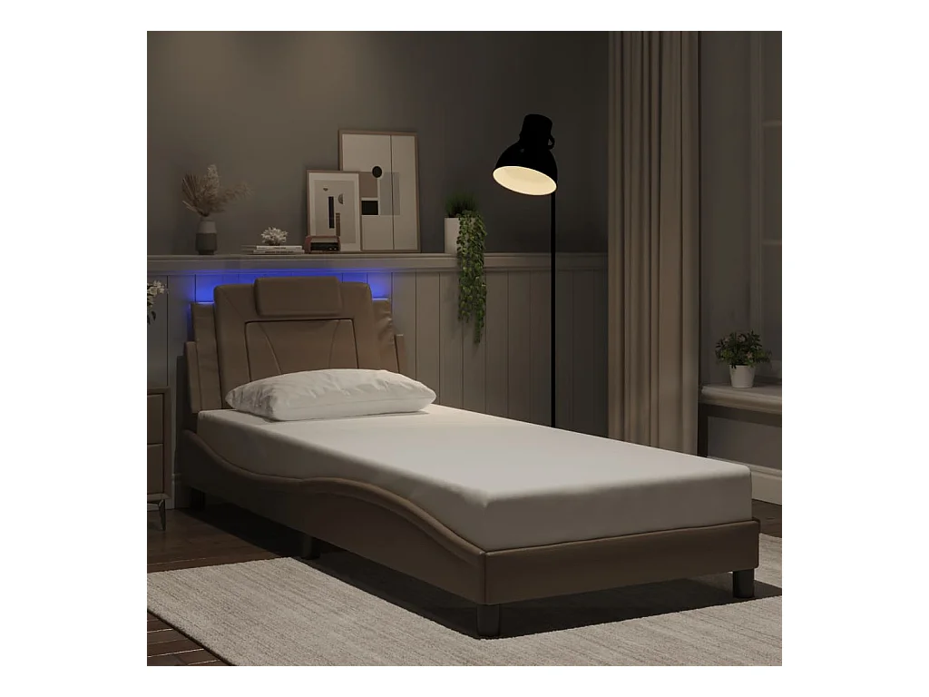 Lit simple avec lumières LED cappuccino 80x200 cm similicuir FR65951