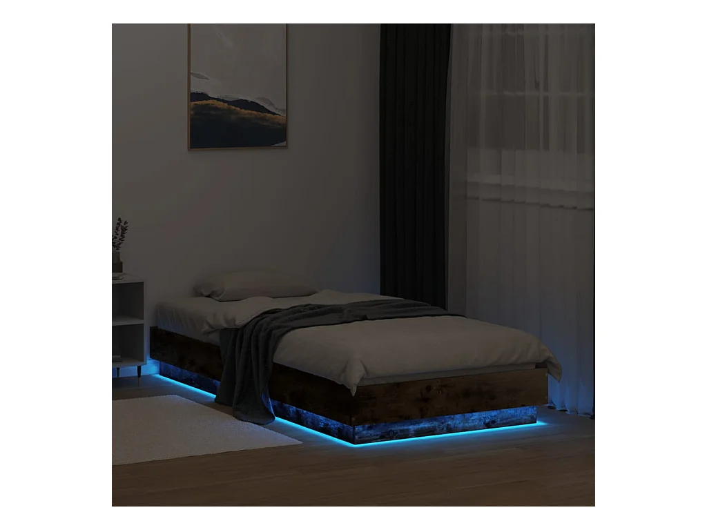 Lit simple avec lumières LED chêne fumé 90x190 cm FR32084