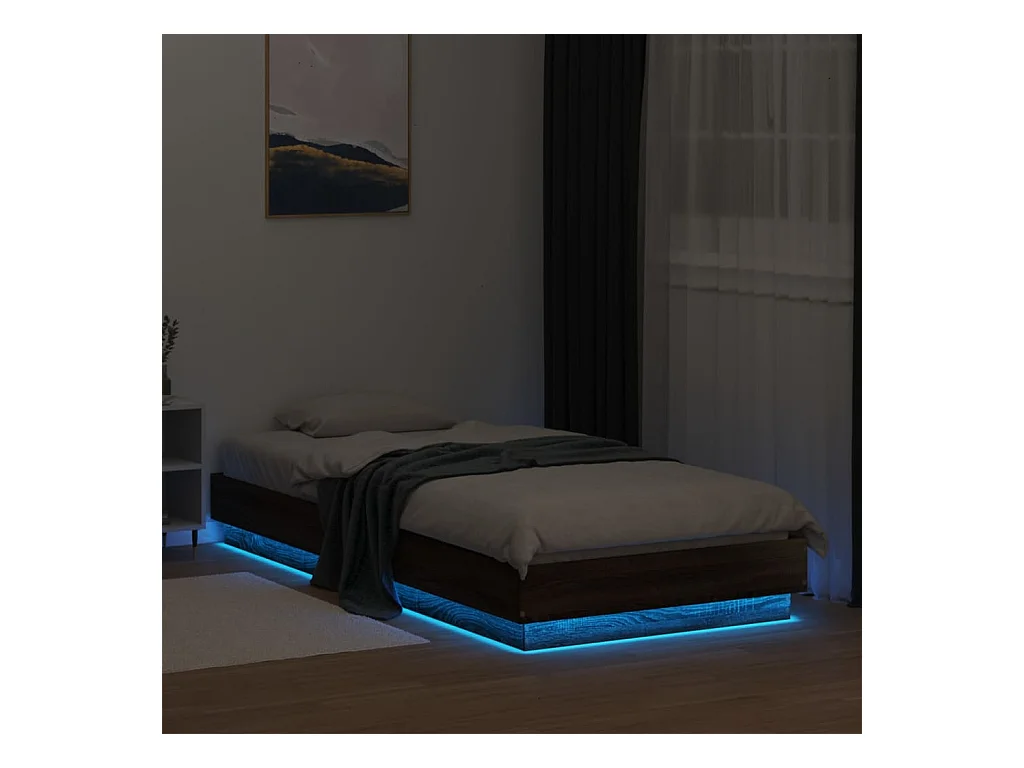 Lit simple avec lumières LED chêne marron 100x200 cm FR98020