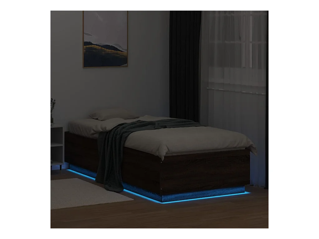 Lit simple avec lumières LED chêne marron 90x200 cm FR92348