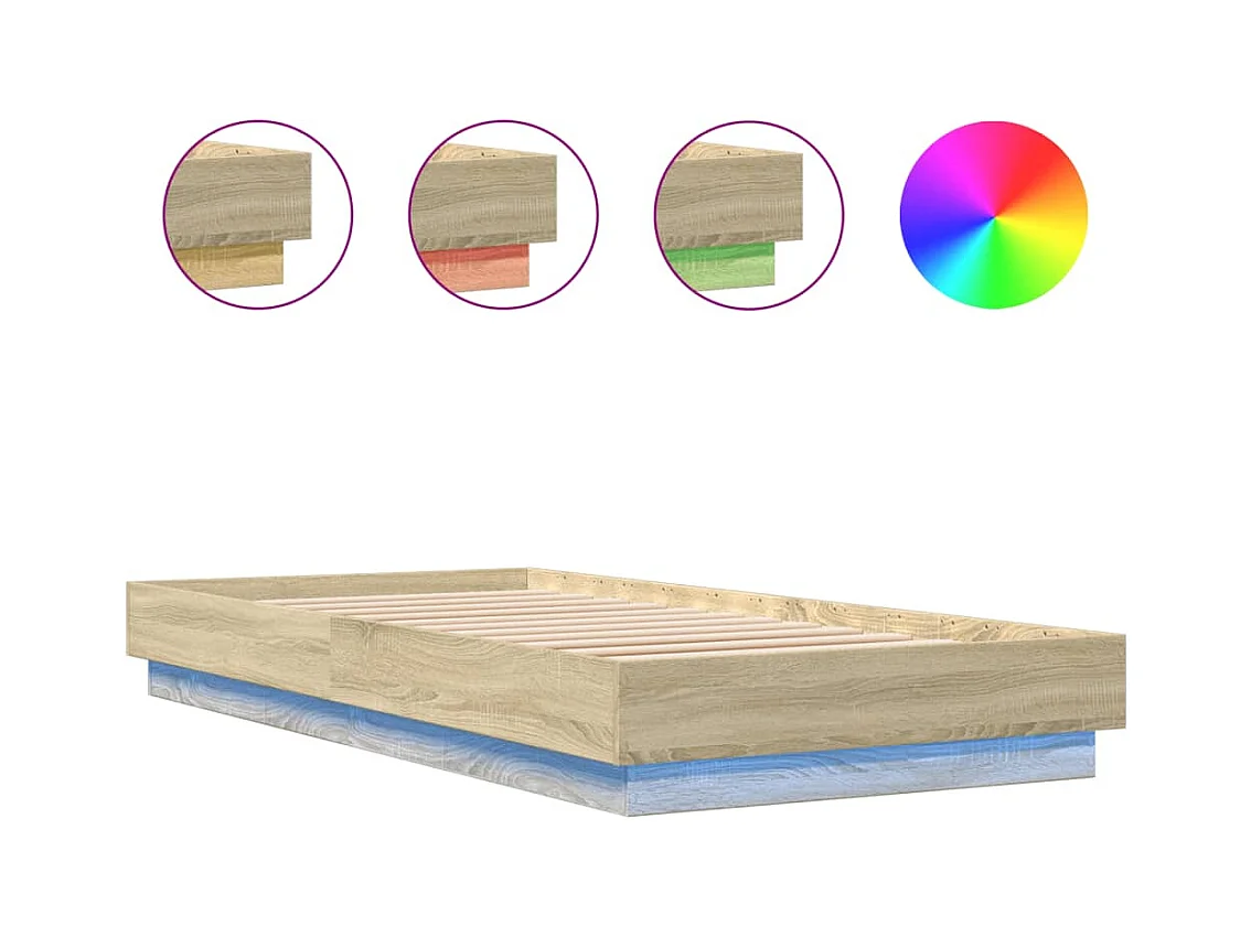 Lit simple avec lumières LED chêne sonoma 100x200 cm FR50035