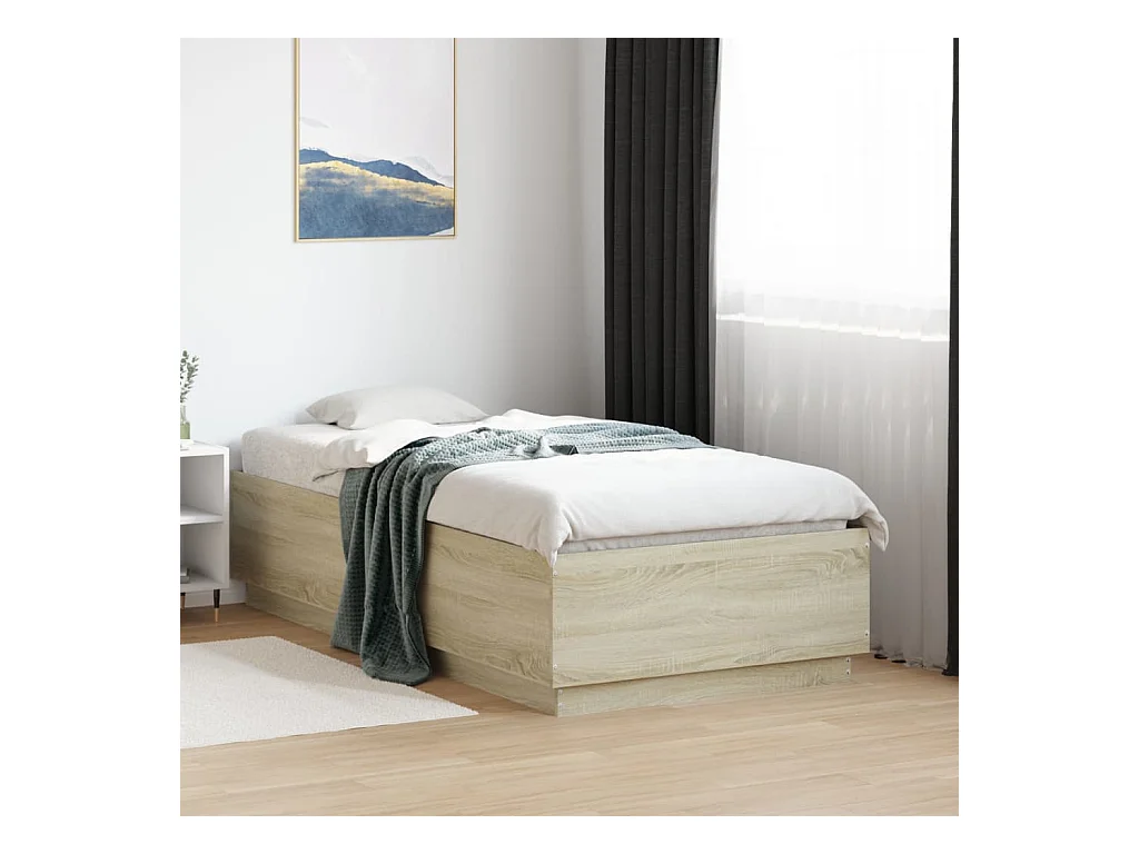 Lit simple chêne sonoma 75x190 cm bois d'ingénierie et métal FR86079