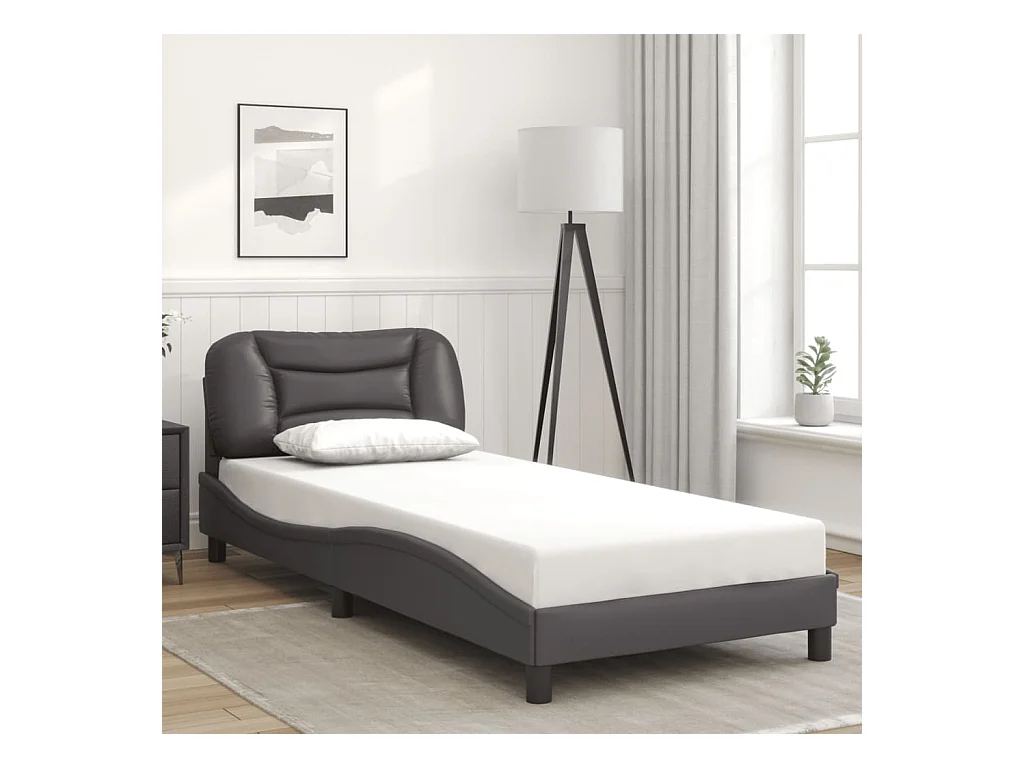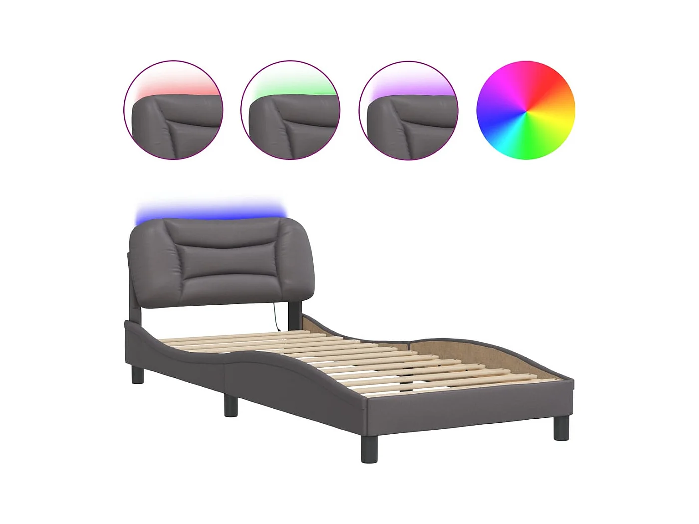Lit simple avec lumières LED gris 90x190 cm similicuir FR35144