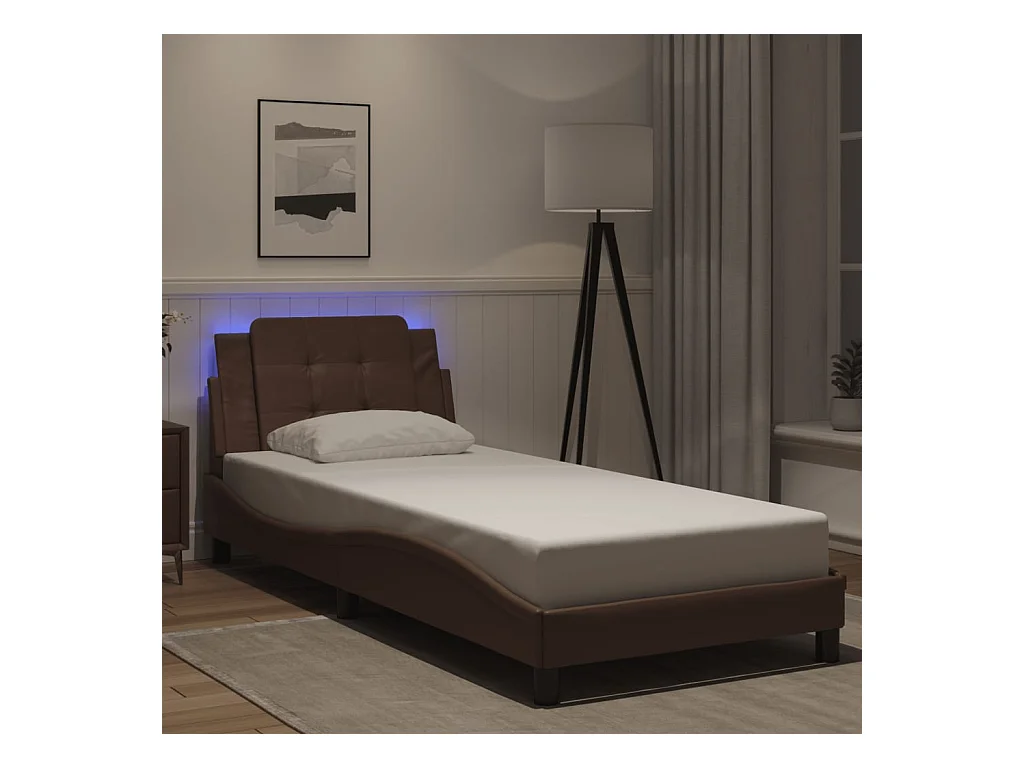 Lit simple avec lumières LED marron 100x200 cm similicuir FR36819