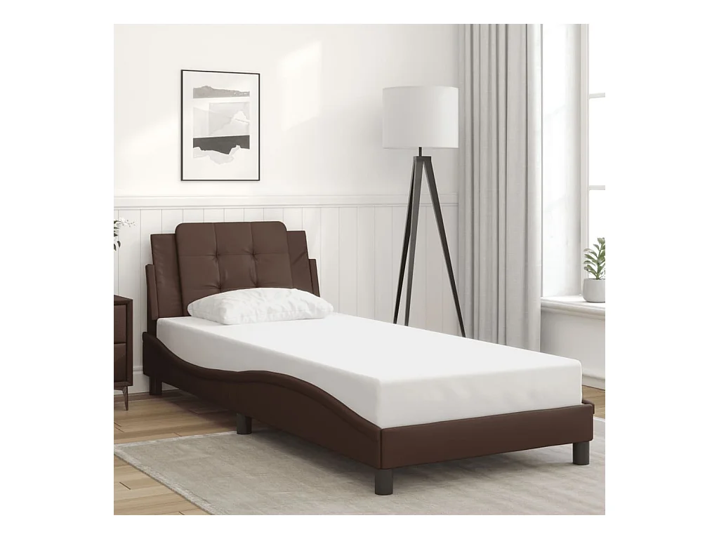Lit adulte + matelas cappuccino 100x200 cm similicuir FR64009