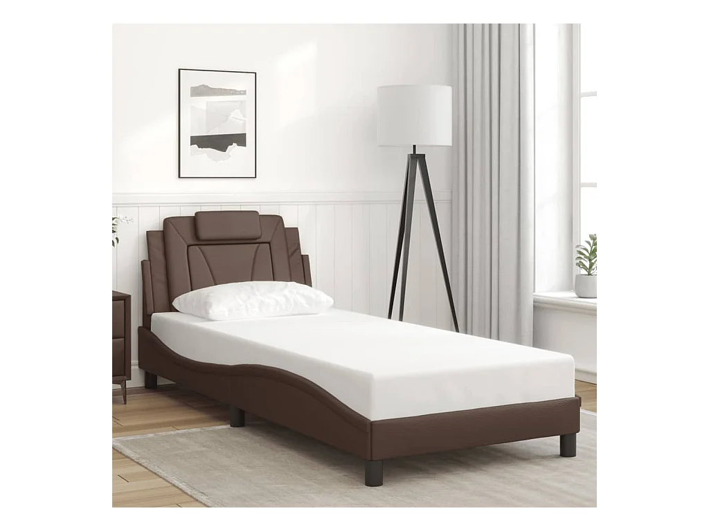 Lit simple + tête de lit Cappuccino 80x200 cm Similicuir FR32675