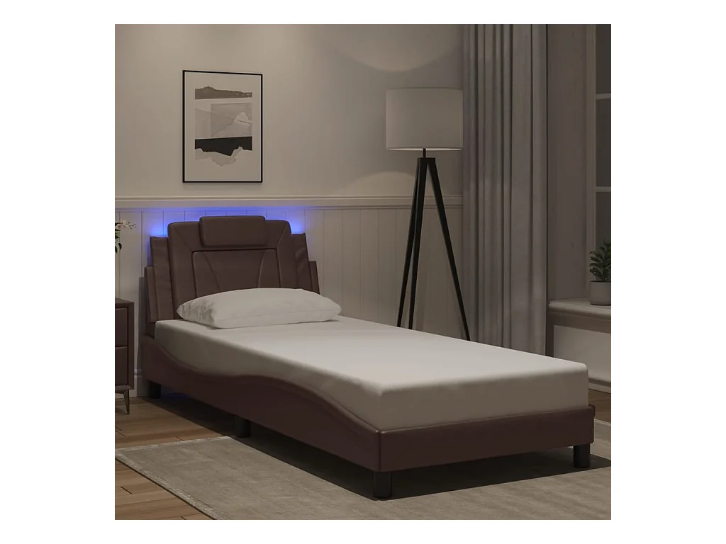 Lit simple avec lumières LED marron 90x200 cm similicuir FR60456