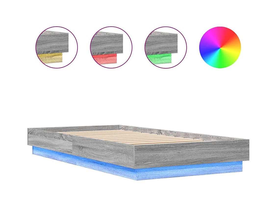 Lit simple avec lumières LED sonoma gris 75x190 cm FR30558
