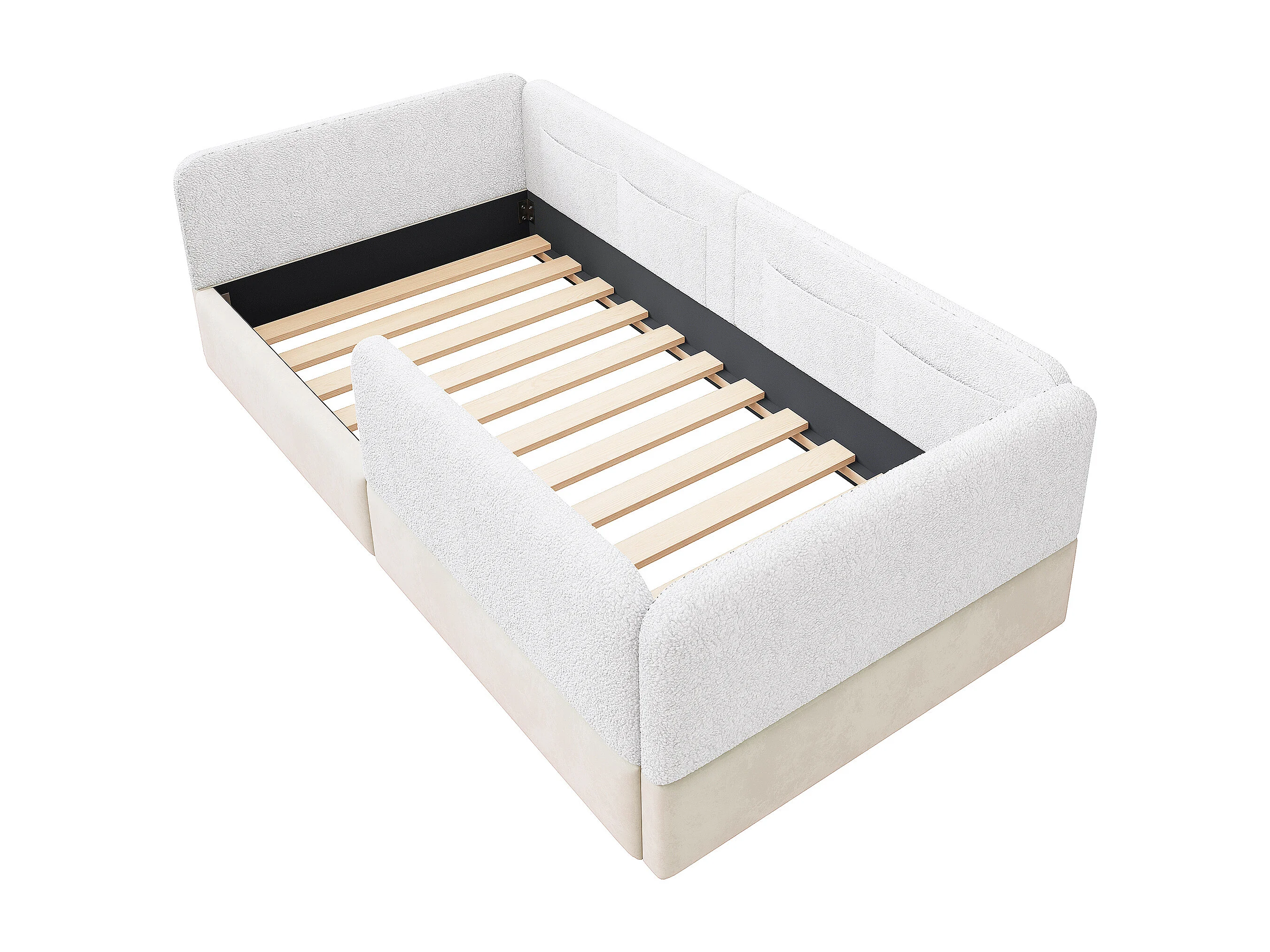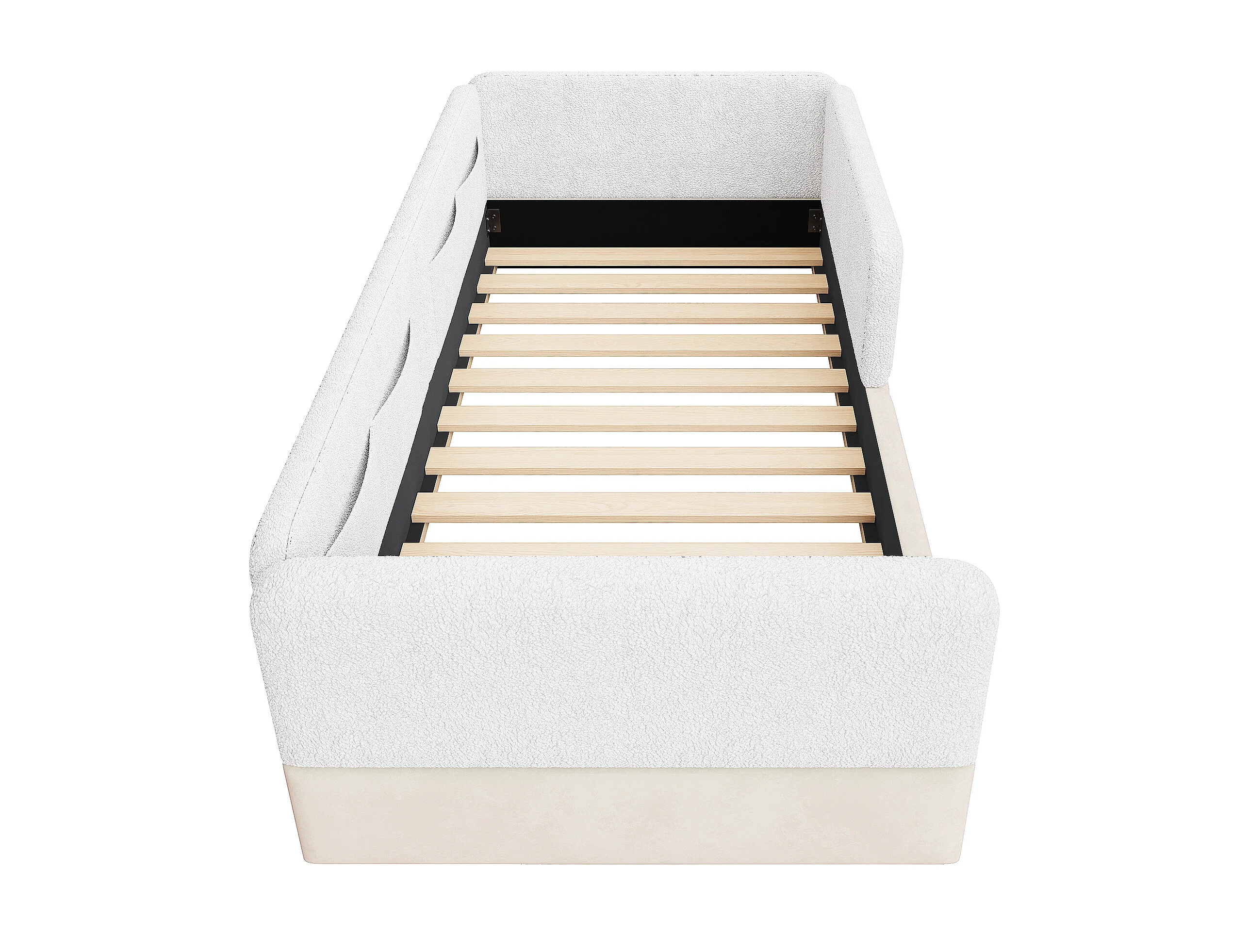 Lit simple capitonné 90x200 cm - avec barrières de sécurité - avec 4 poches de rangement - MDF + lin + PU - Blanc (sans matelas)