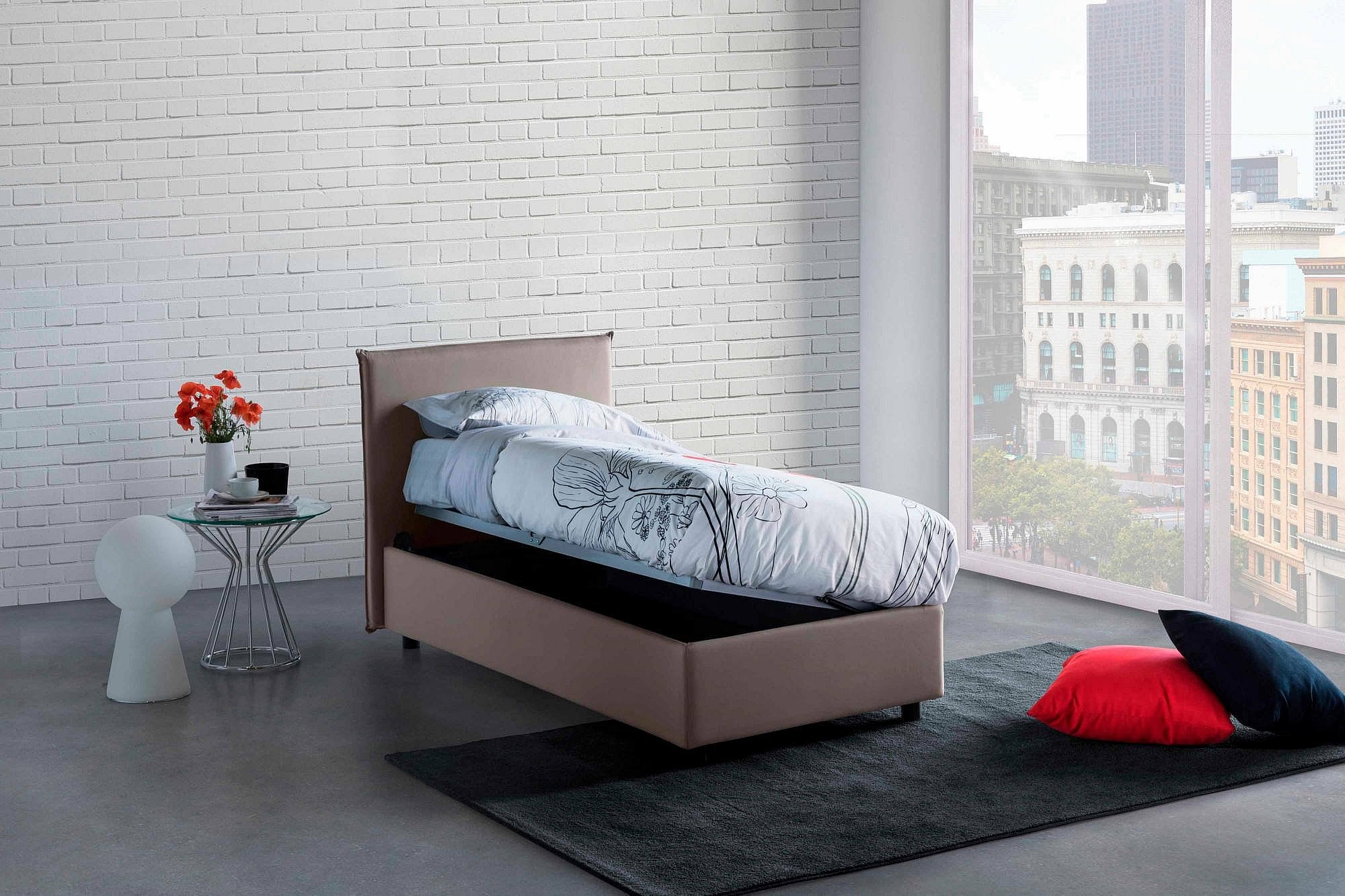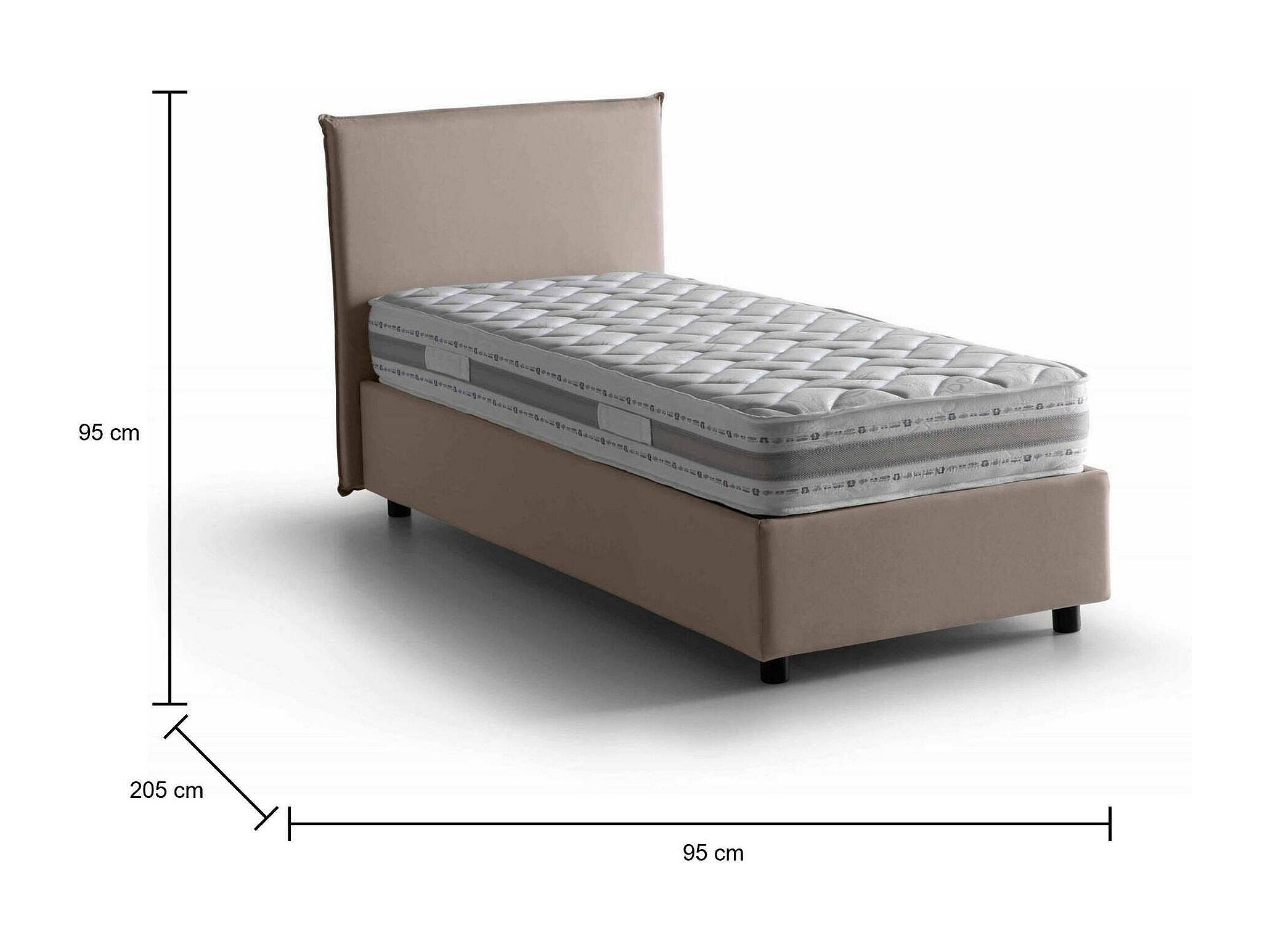 Lit simple Vittoria, Lit coffre avec revêtement en éco-cuir, 100% Made in Italy, Ouverture latérale, avec matelas 80x190 cm inclus, Taupe