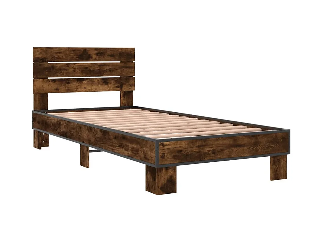 Lit simple chêne fumé 100x200 cm bois d'ingénierie et métal FR11525