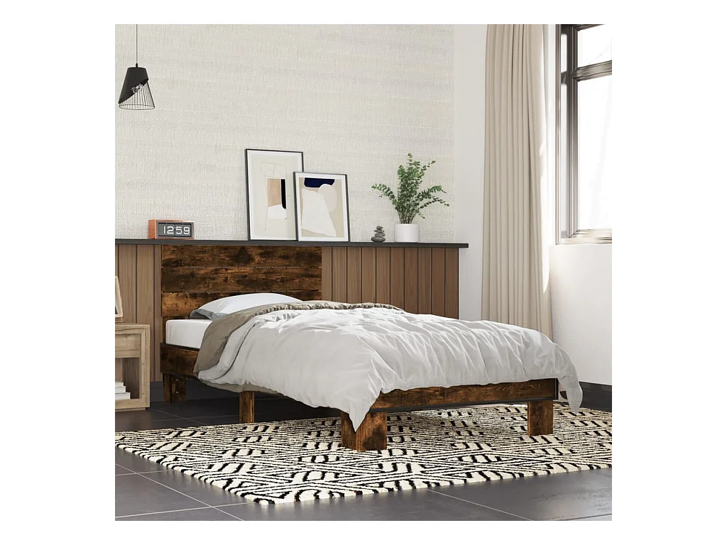 Lit simple chêne fumé 100x200 cm bois d'ingénierie FR48628