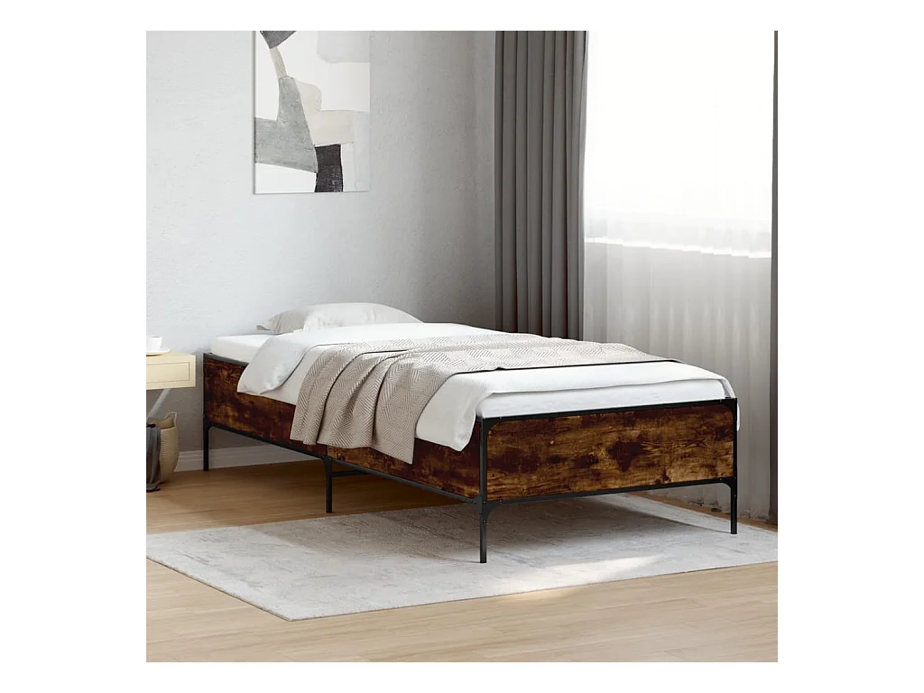 Lit simple chêne fumé 100x200 cm bois d'ingénierie et métal FR98080