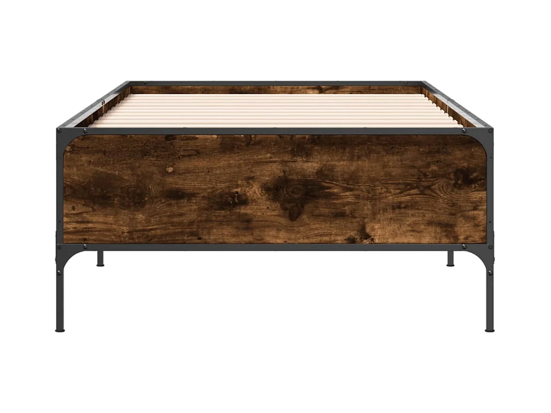 Lit simple chêne fumé 100x200 cm bois d'ingénierie et métal FR55492