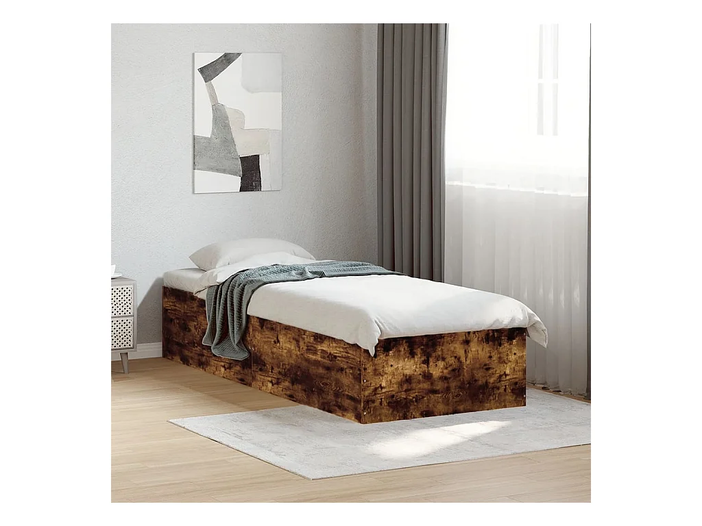 Lit simple chêne fumé 100x200 cm bois d'ingénierie FR67824