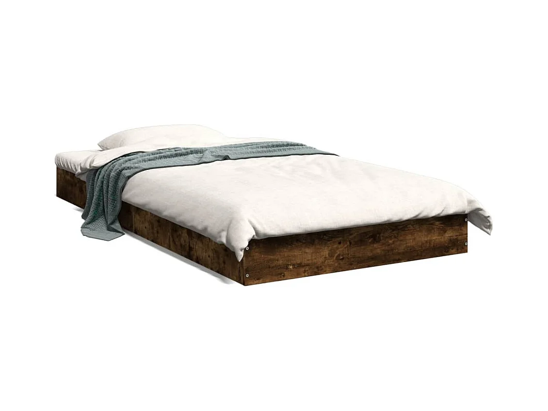 Lit simple chêne fumé 100x200 cm bois d'ingénierie FR74417