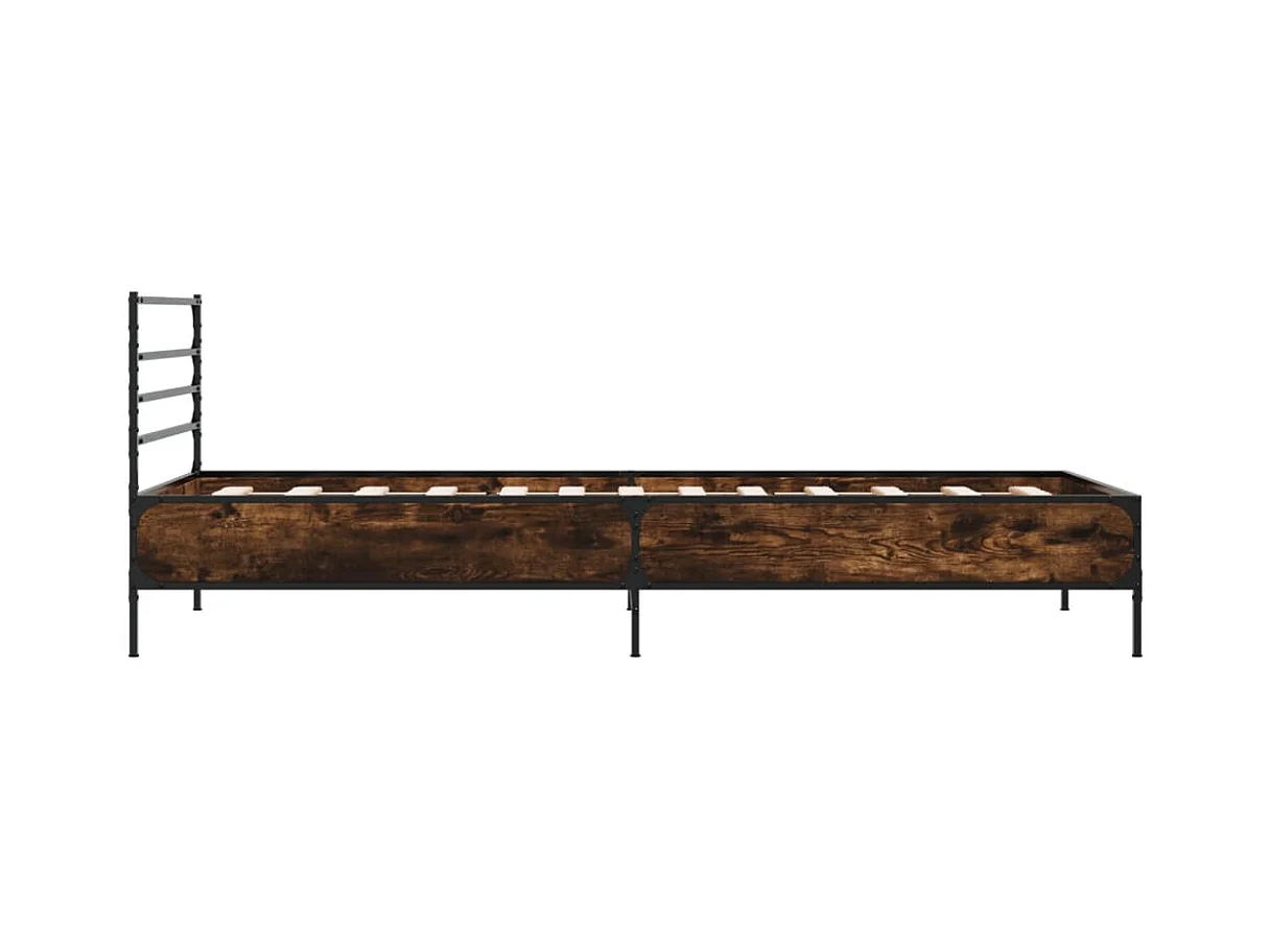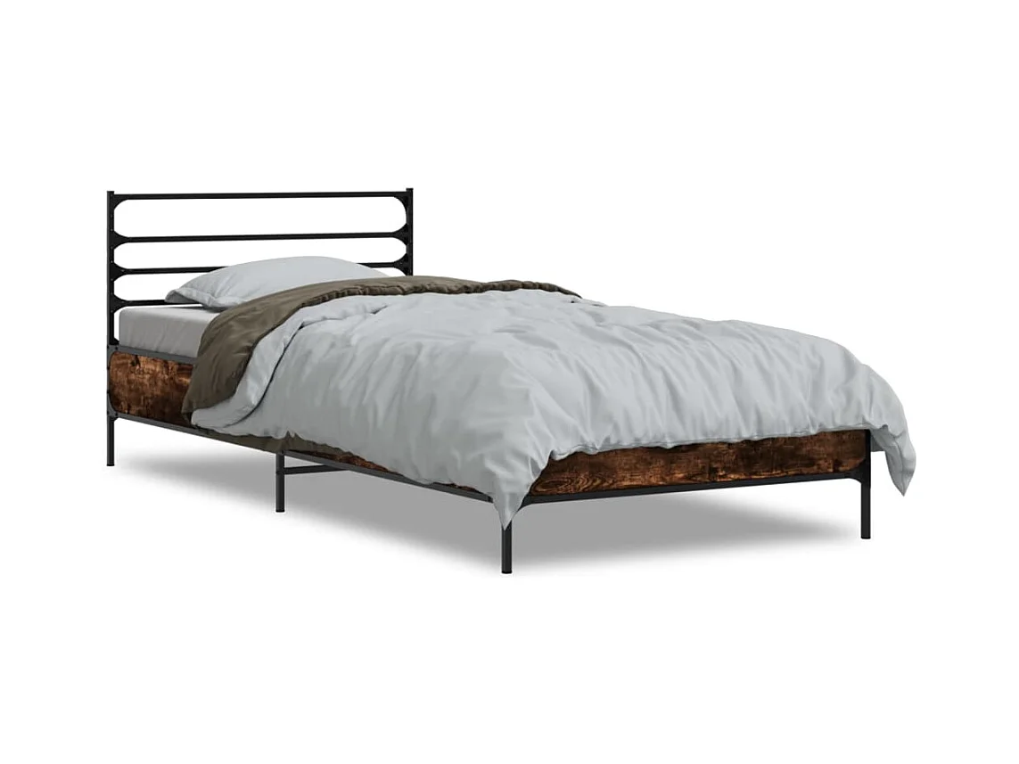 Lit simple chêne fumé 90x190 cm bois d'ingénierie et métal FR30777
