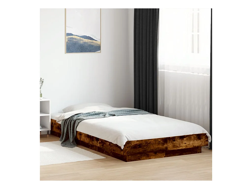 Lit simple chêne fumé 90x190 cm bois d'ingénierie FR59319