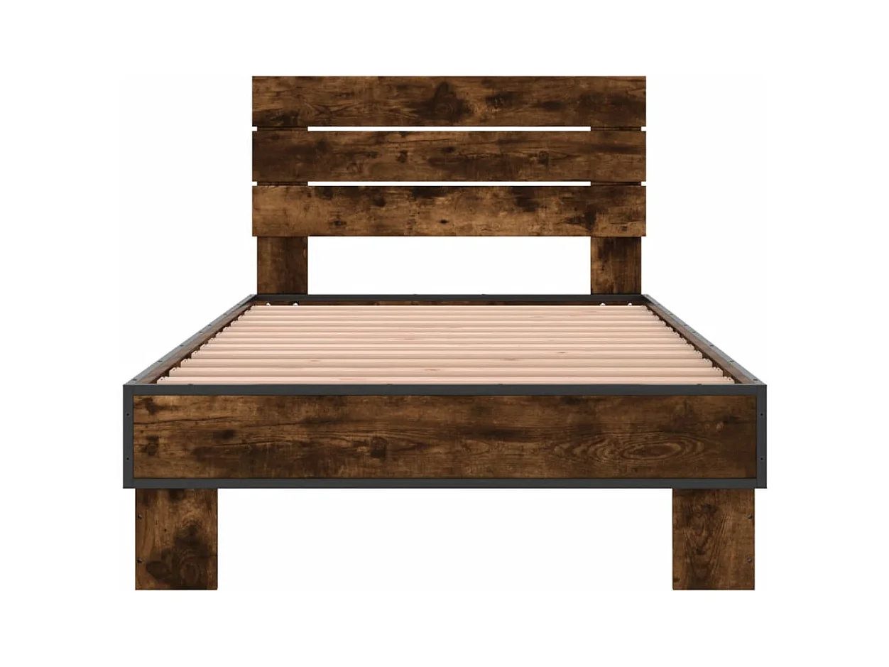 Lit simple chêne fumé 90x200 cm bois d'ingénierie et métal FR92461