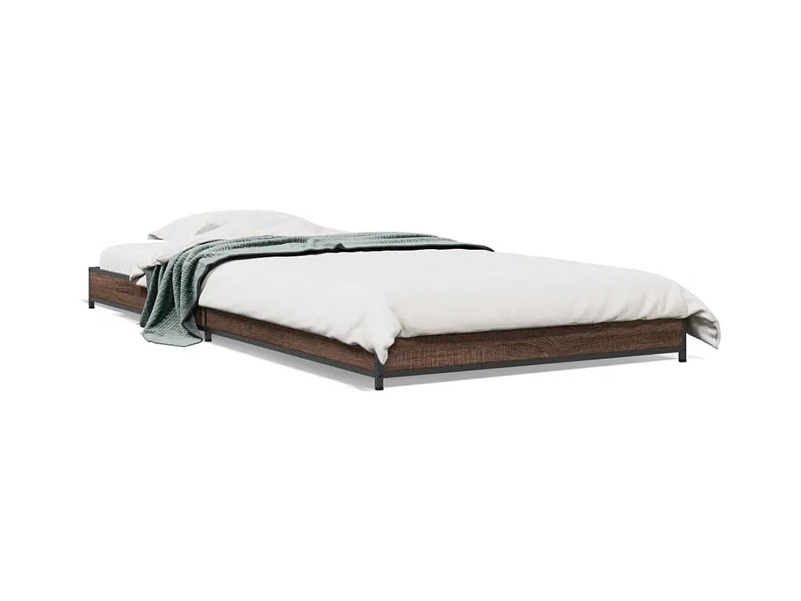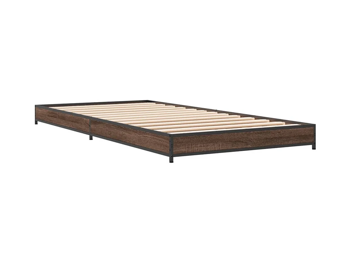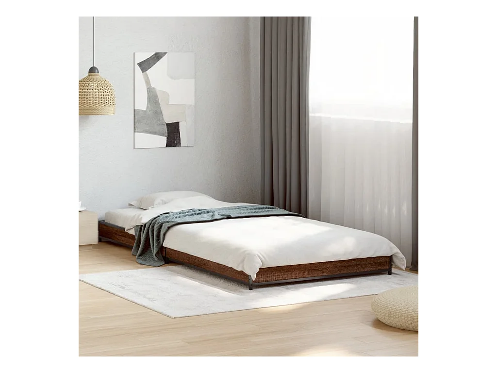 Lit simple chêne marron 75x190 cm bois d'ingénierie et métal FR77904