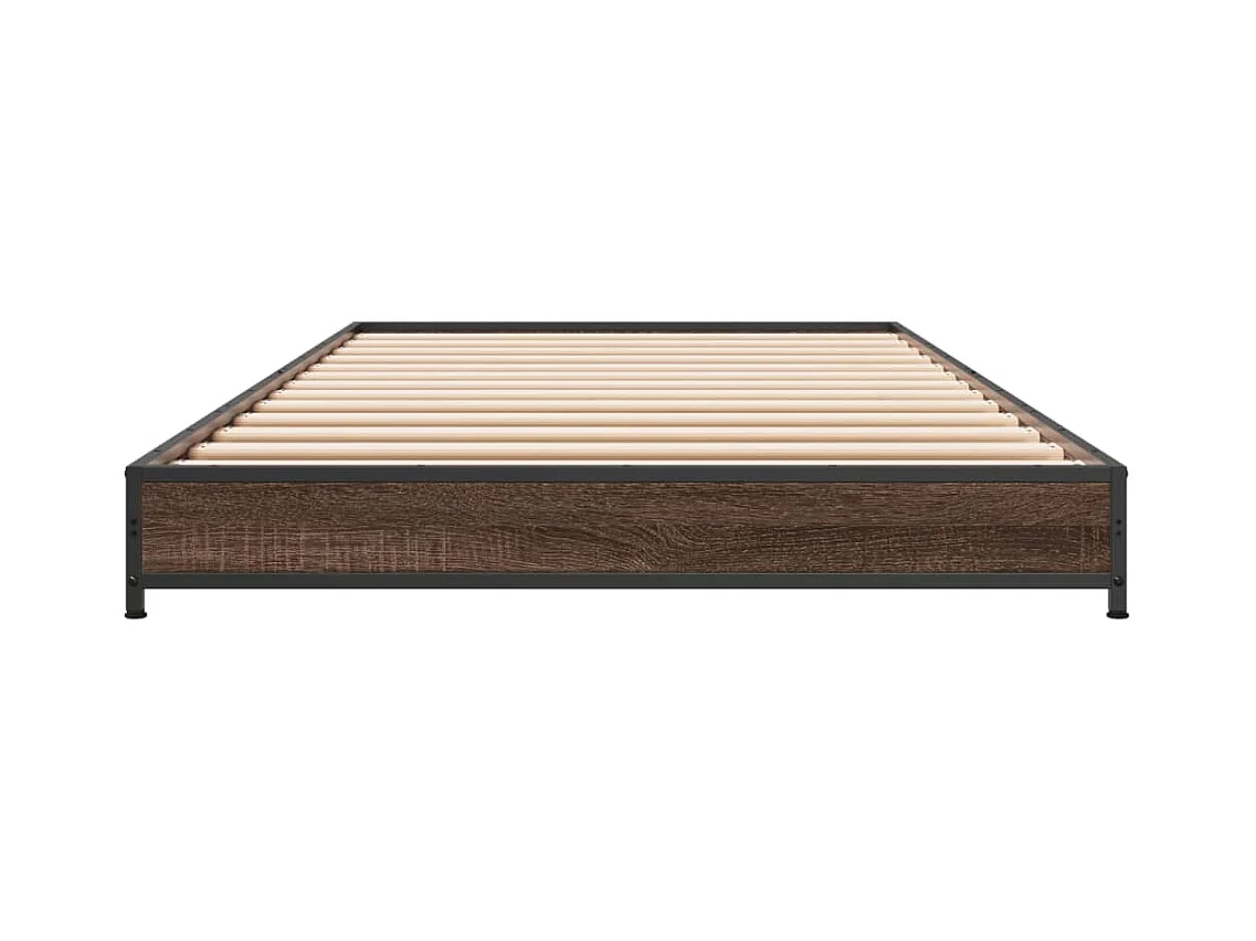Lit simple chêne fumé 75x190 cm bois d'ingénierie et métal FR38055