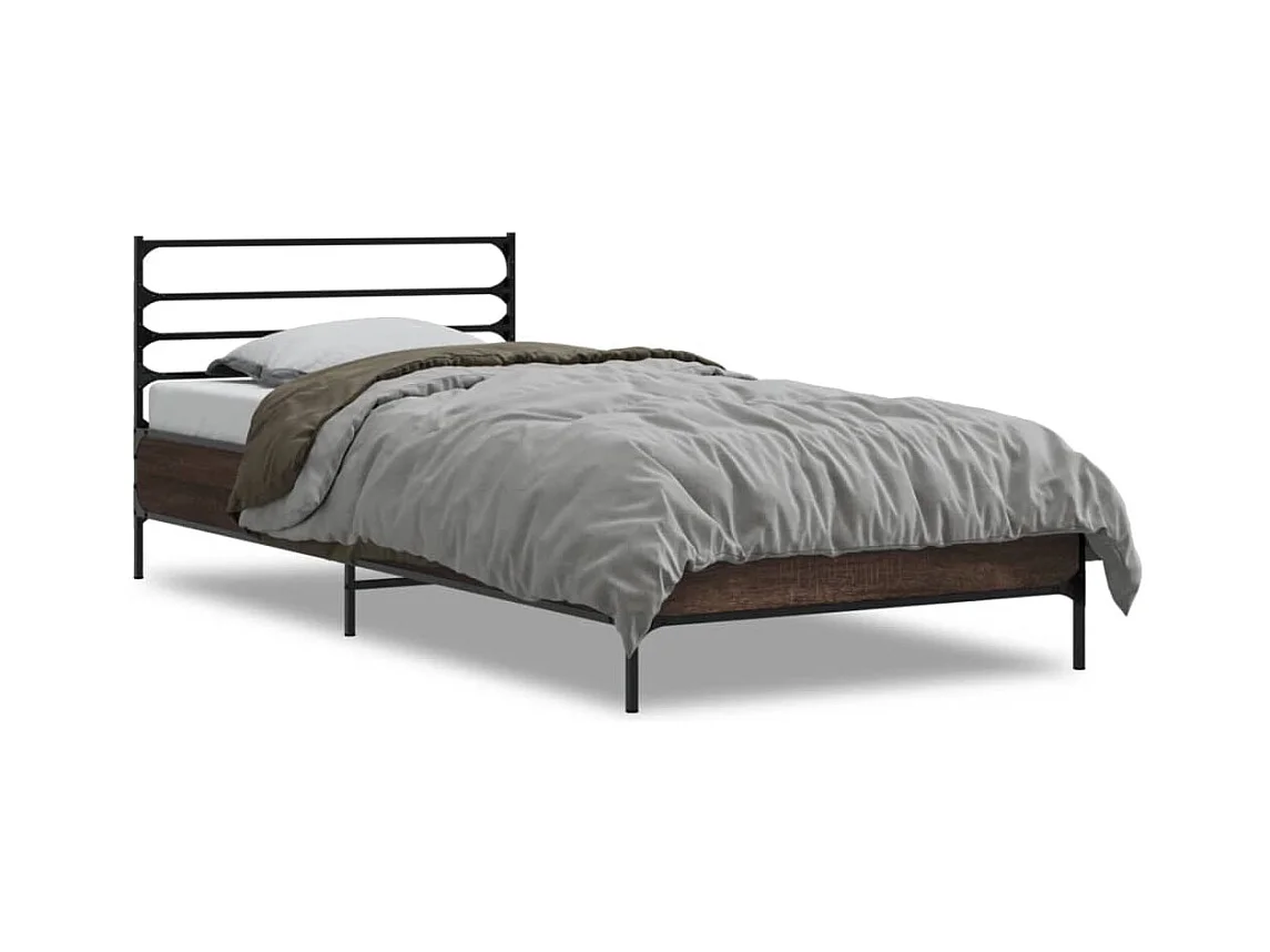 Lit simple chêne marron 90x190 cm bois d'ingénierie et métal FR90755