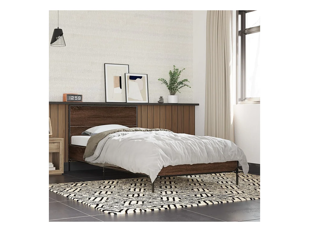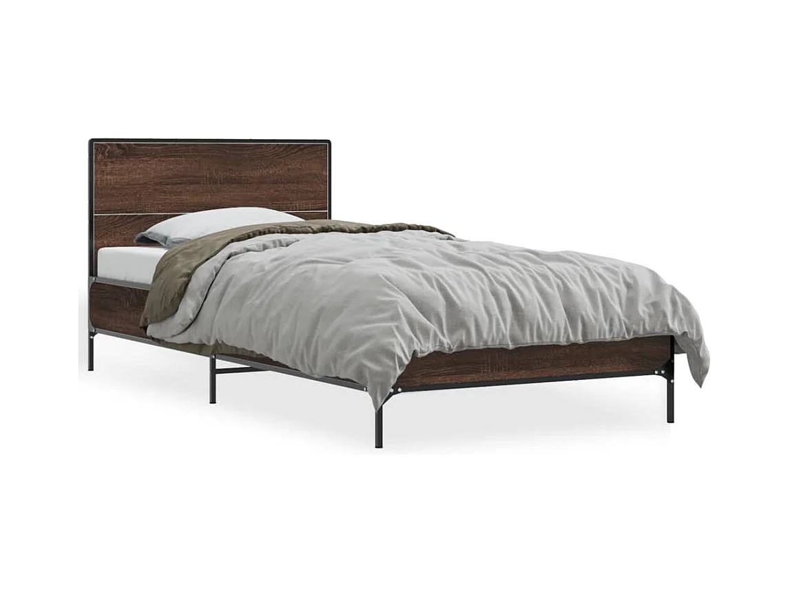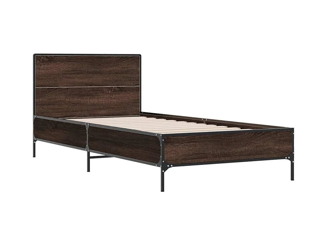 Lit simple chêne marron 90x200 cm bois d'ingénierie et métal FR23573