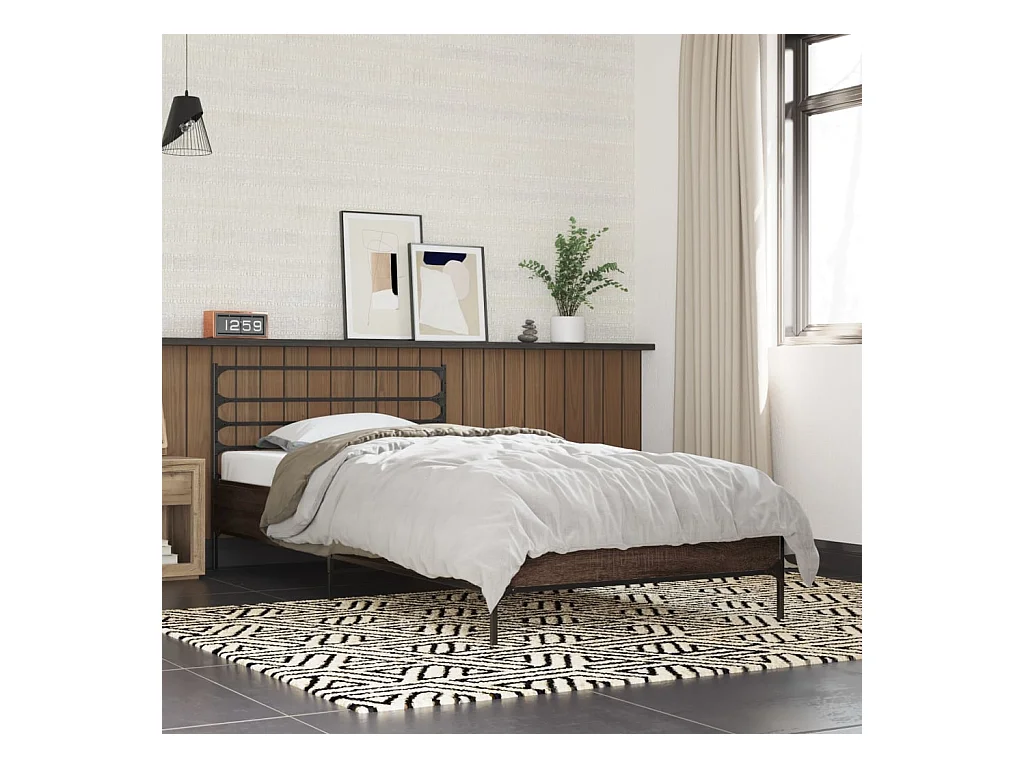 Lit simple chêne fumé 90x200 cm bois d'ingénierie et métal FR21469