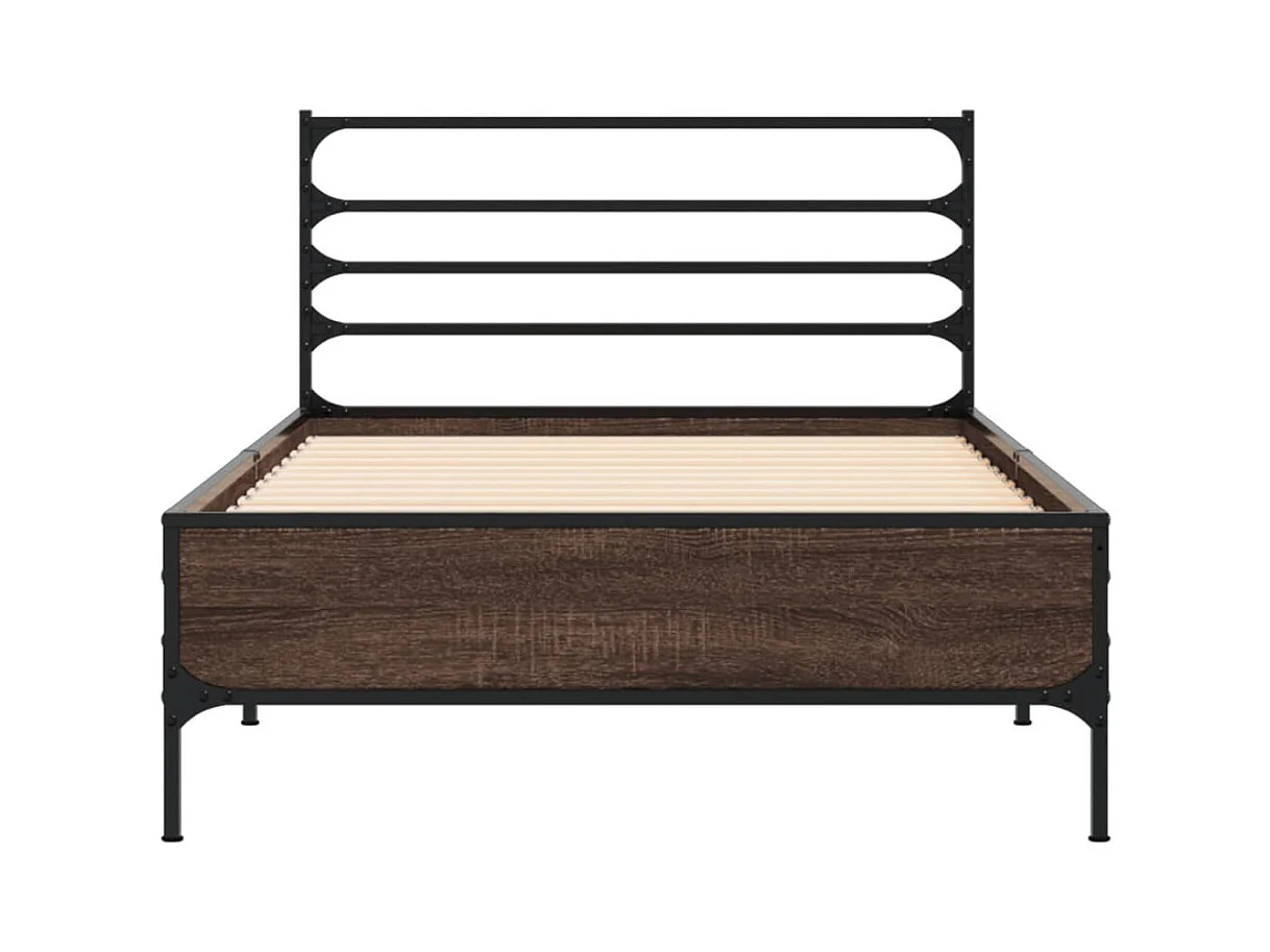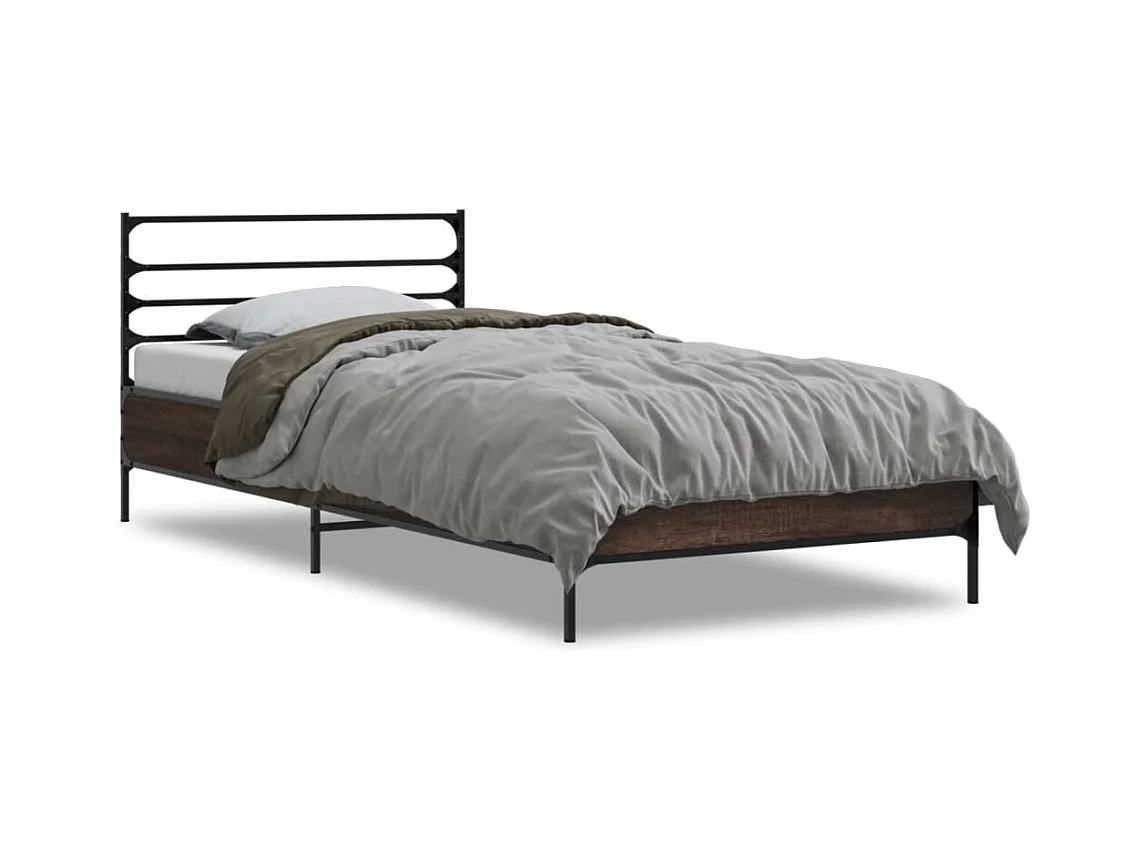 Lit simple chêne fumé 90x200 cm bois d'ingénierie et métal FR92461